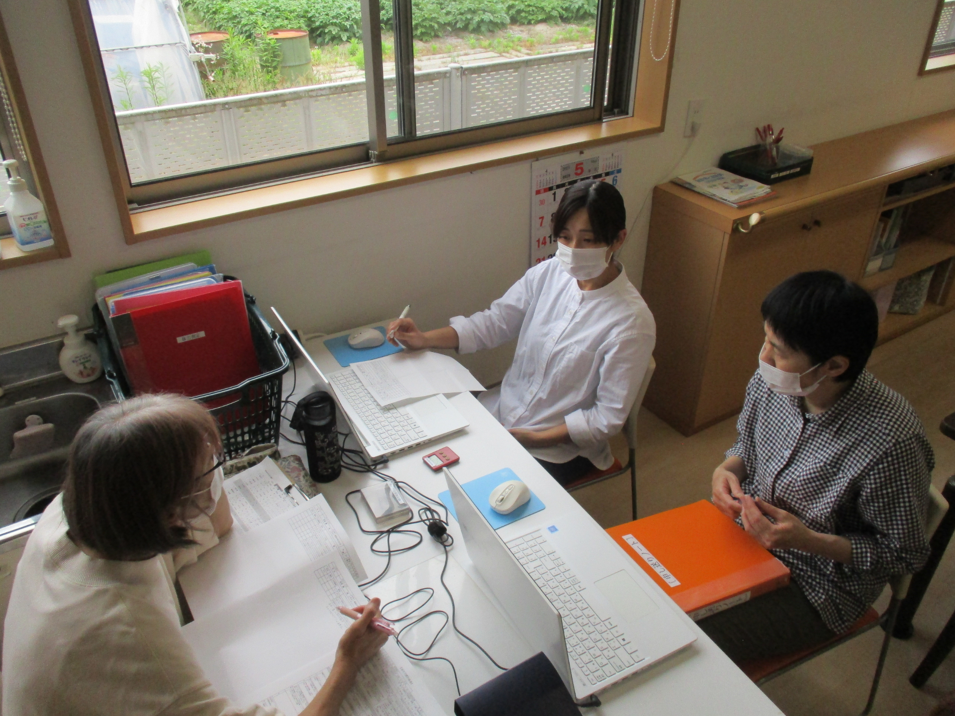 2023/05/24 サロンDoo カンファレンス こんにちは、サロンDooです。 今回のブログは、サロンDooで実施しているカンファレンスのご紹介です。 1人のご利用者様には、リハビリ・介護・看護の担当者がおりその3人が中心となって支援を行っています。 写真は実際のカンファレンス場面です。 検討内容としては、目標の確認や問題点の共有、自主トレーニングの再考などです。 カンファレンスで決めたことを実践して、「自立支援」・「機能回復」に繋げています。
