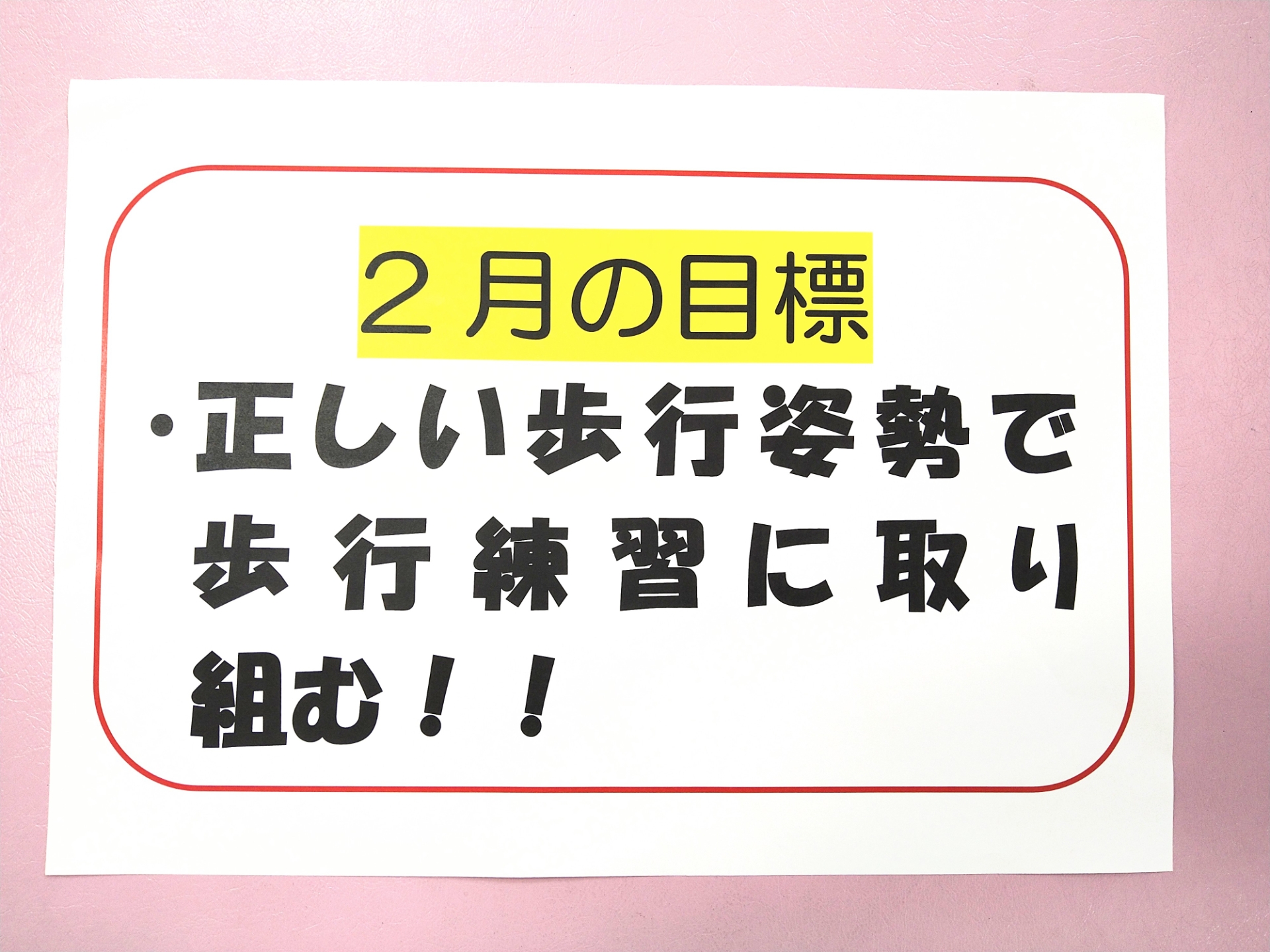 2月の目標は、『正しい歩行姿勢で歩行練習に取り組む』です!