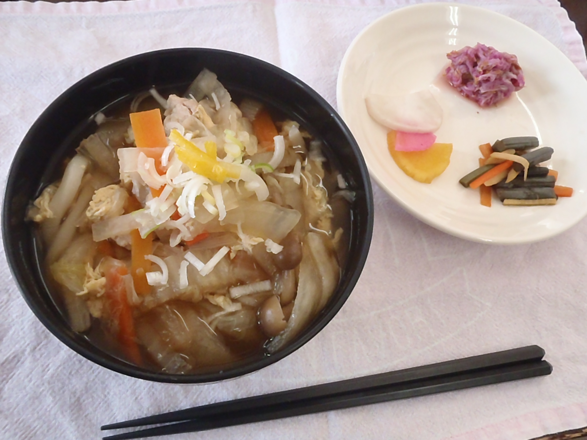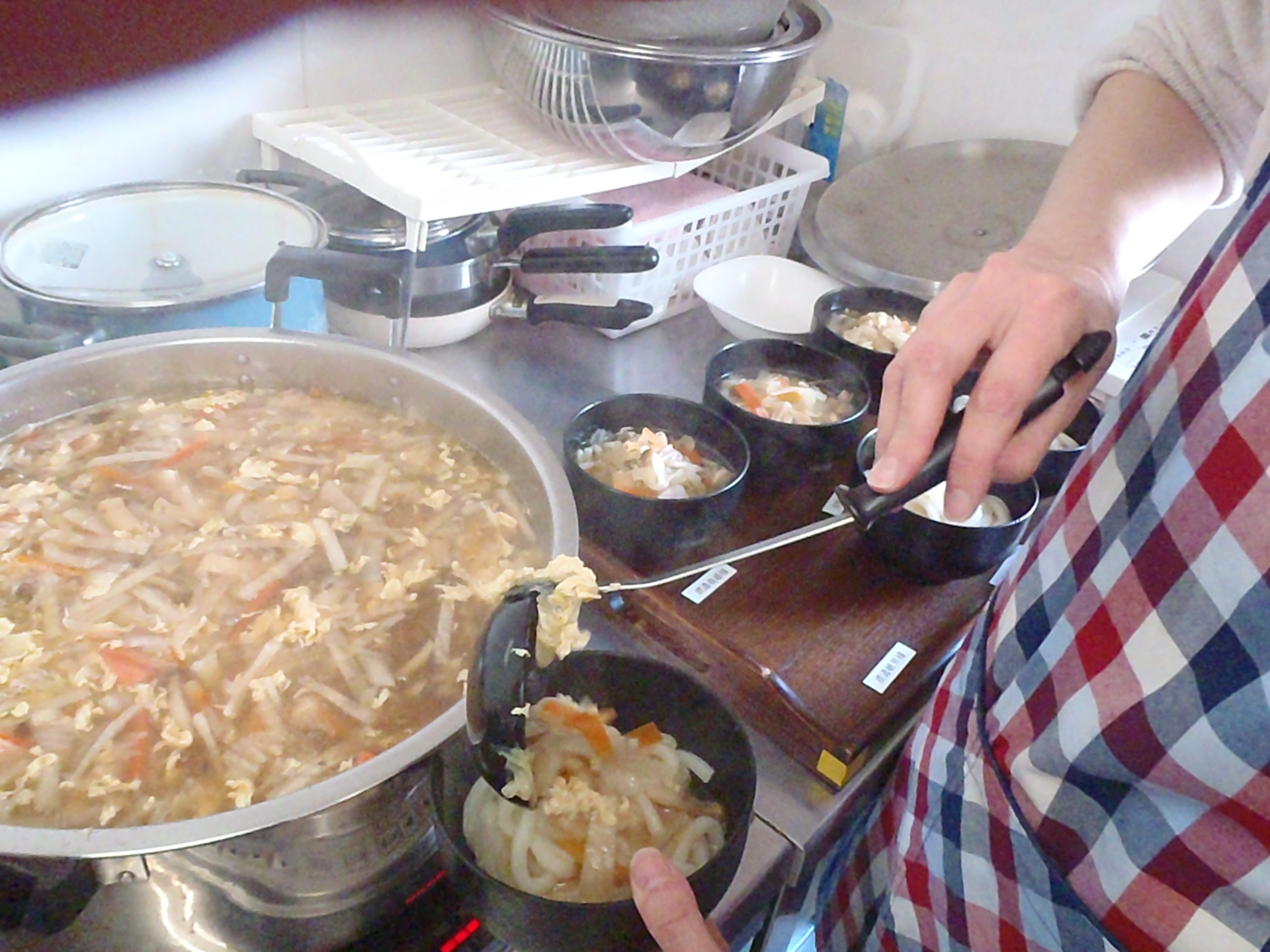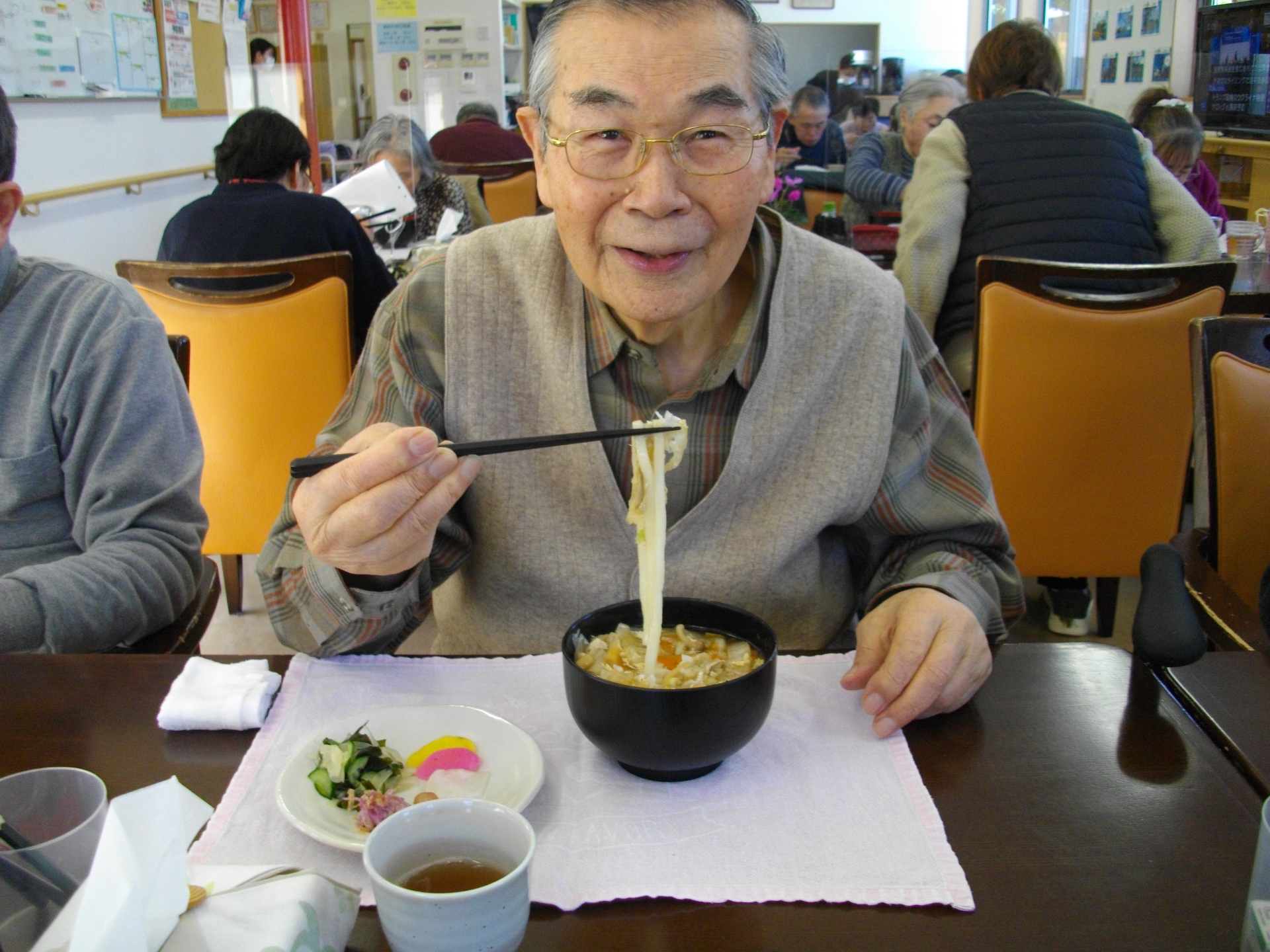 2025/02/18 サロンDoo 2月の食事フェア!! こんにちは、サロンDooです! サロンDooでは、今月も食事フェアを開催中です! 寒い日が続いていますので、やはり「温かい物がいい!」とのお声に今月は「具沢山かきたま汁うどん」としました! 付け合わせのお皿には、手作りのお漬物三色盛りやらっきょう風あさつき、胡瓜と玉ねぎ、わかめの酢の物、かきのもとのお浸し等々。 「これは沢山食べられる!」 「温まって元気が出る!」 「久しぶりにたっぷり野菜を食べた!」 と皆さんほぼ完食して下さいました。 来月は外食イベントを企画中☆ご報告をお楽しみに~!!