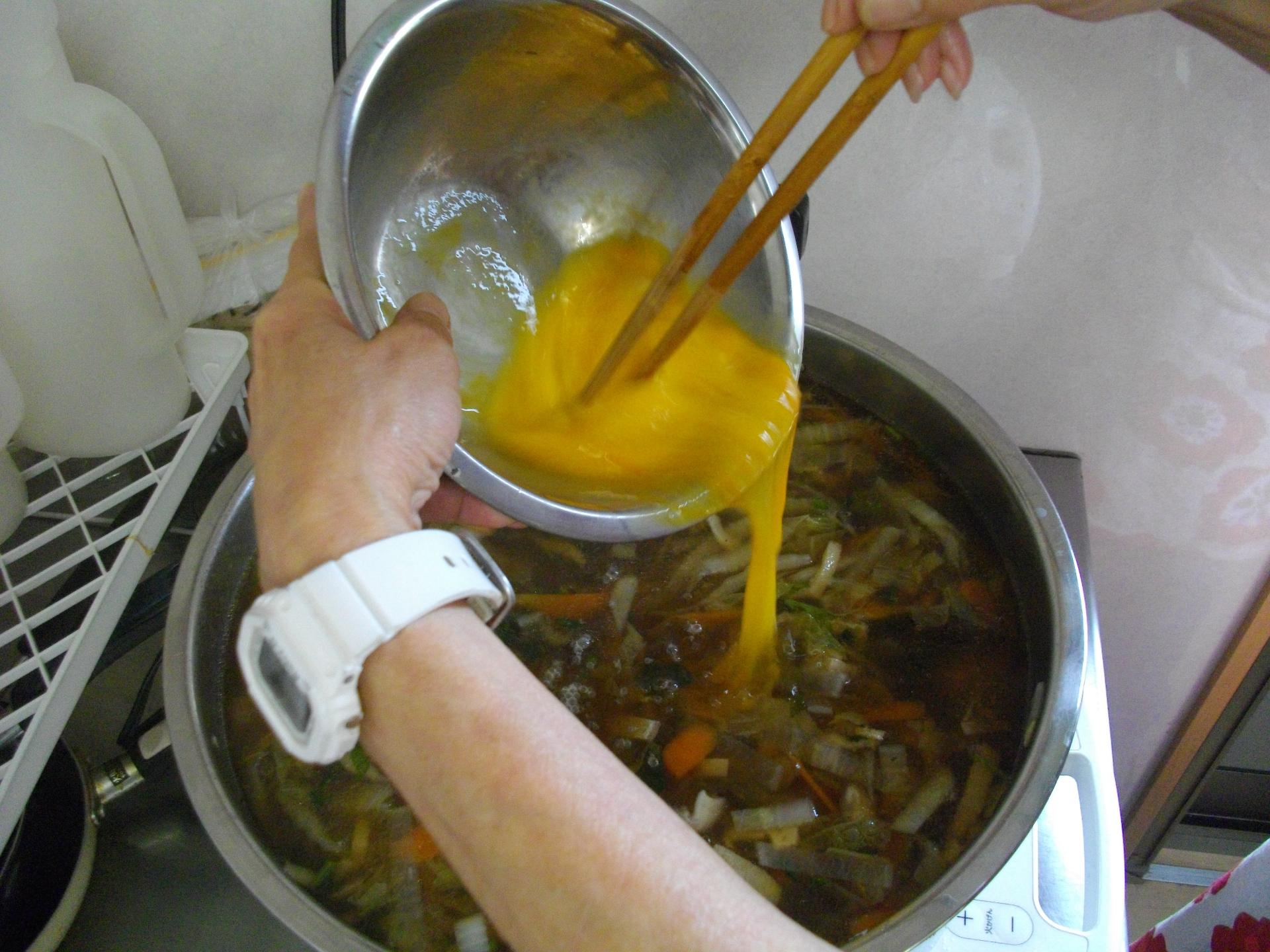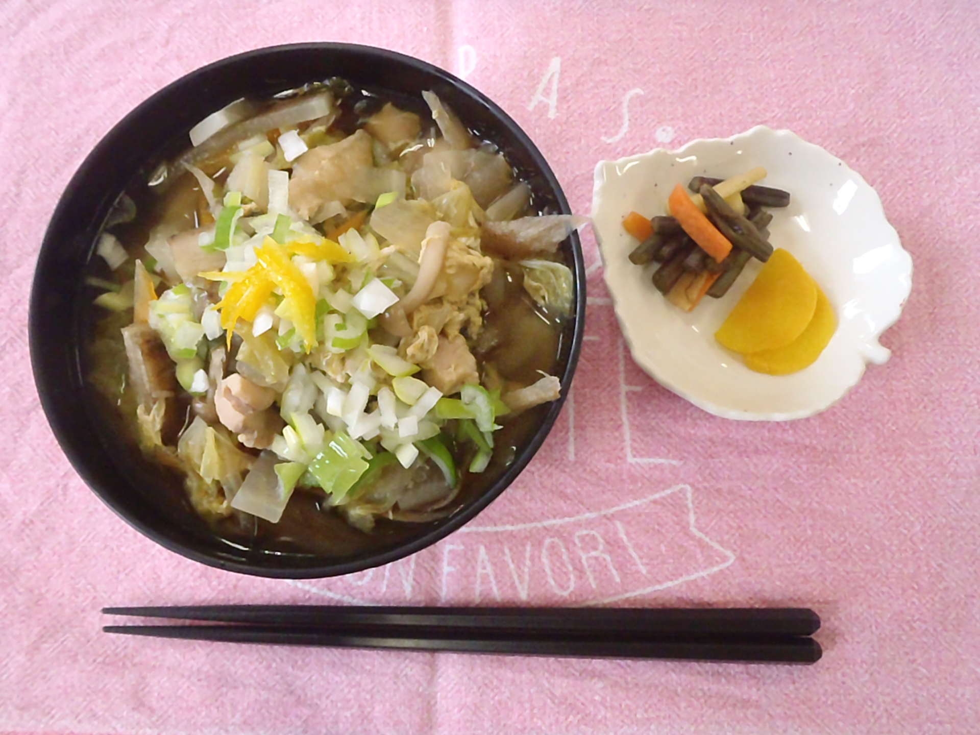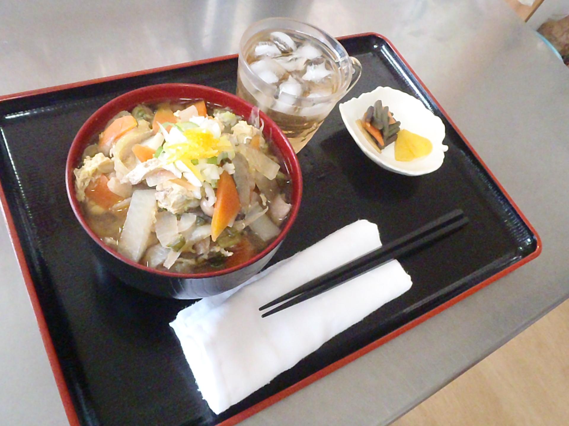 温麺は野菜たっぷりかき玉うどん!トッピングしたゆずがいい仕事をしていて、体がポカポカ温まりました!