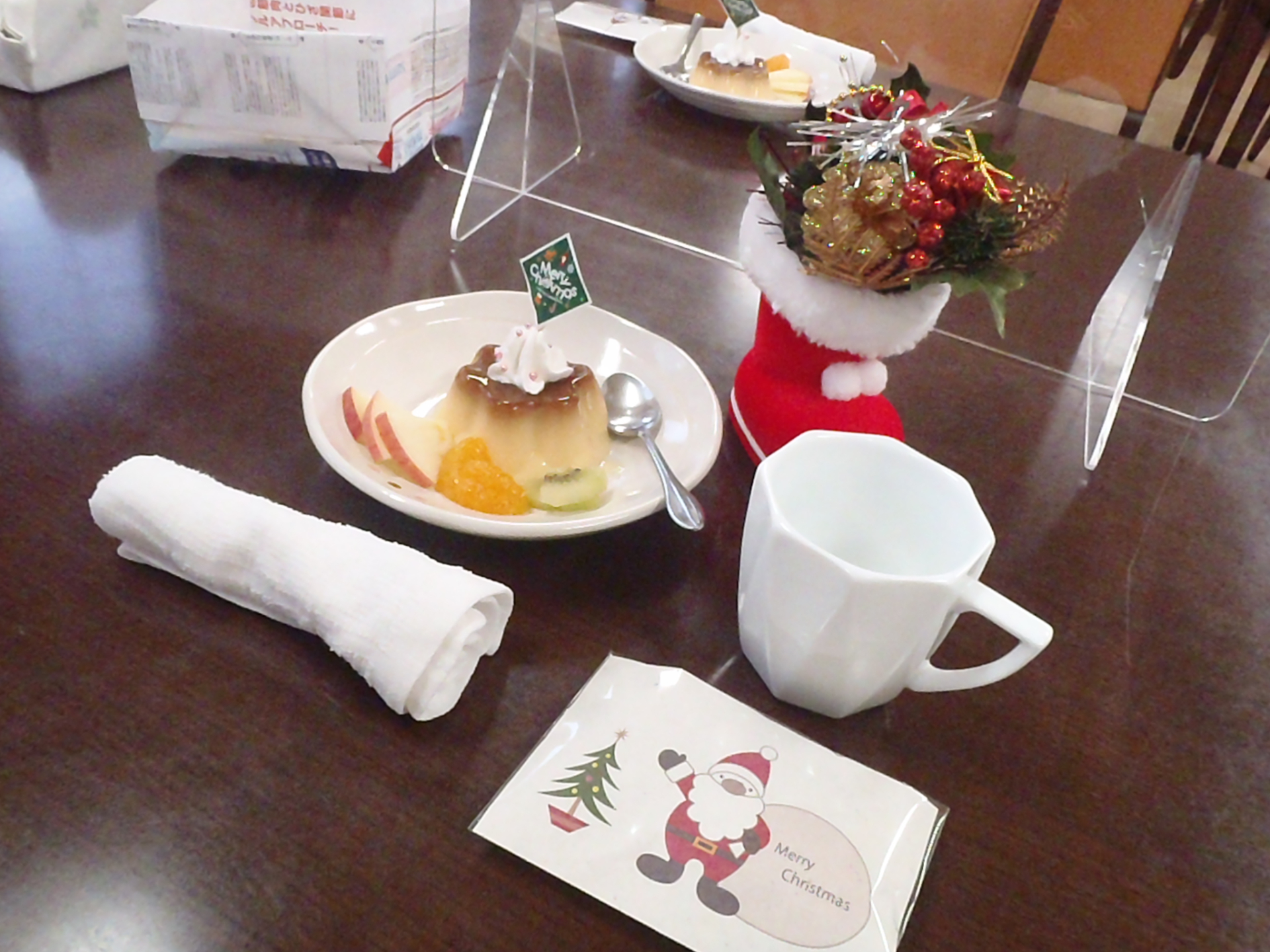 特製プリンアラモード!皆さんにクリスマスの雰囲気を味わっていただきました!