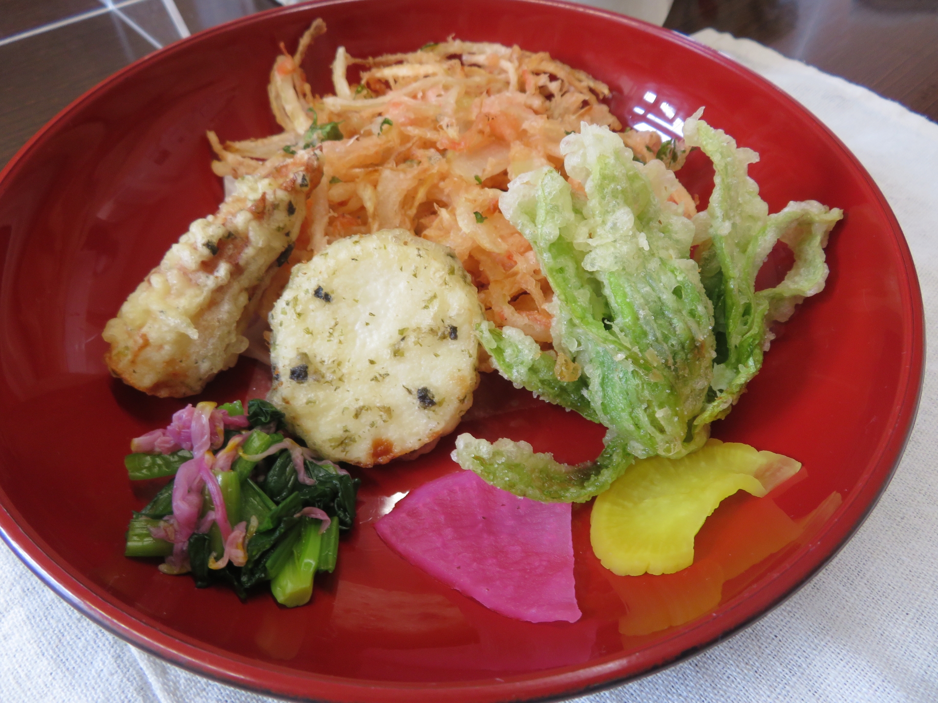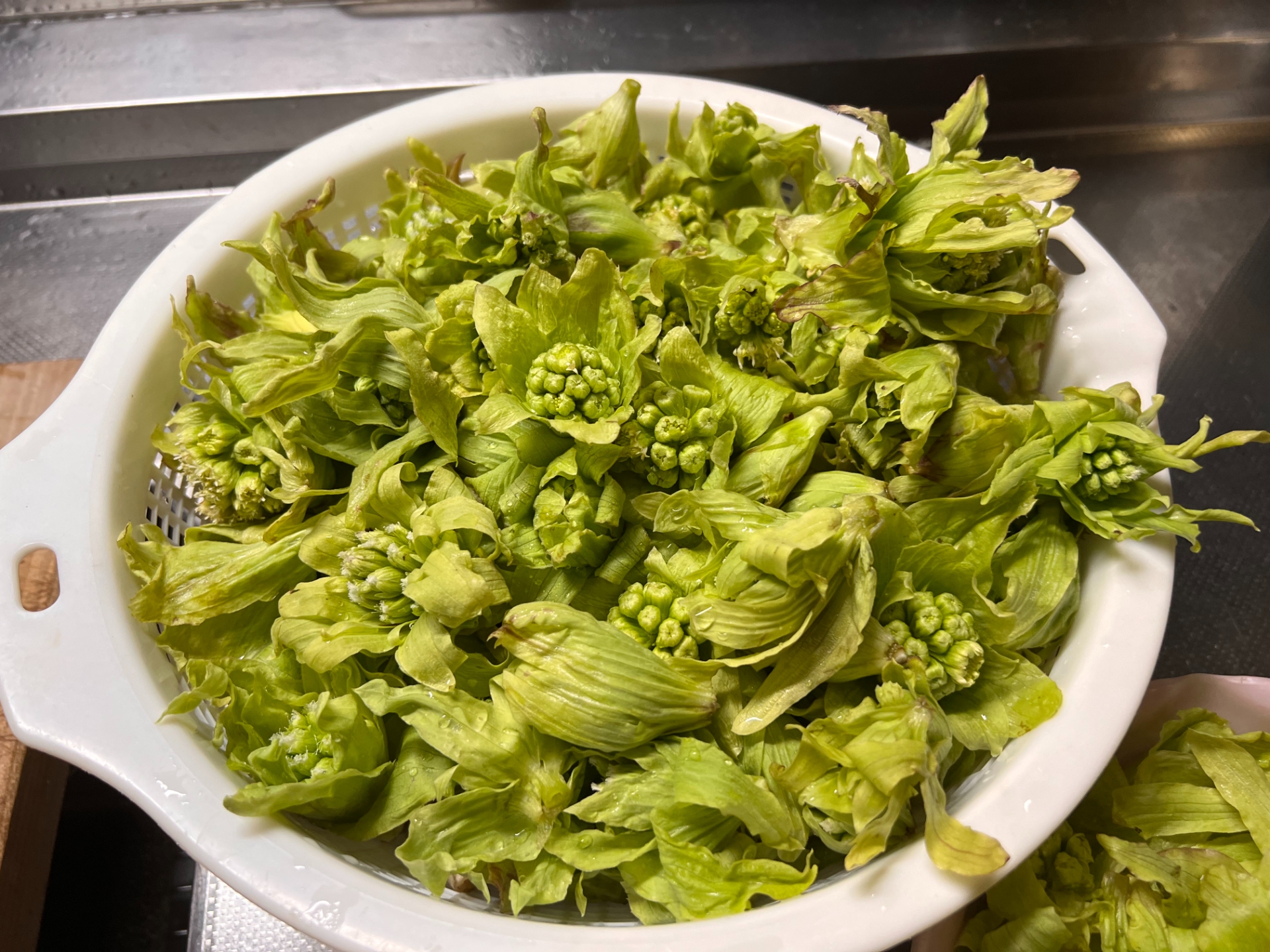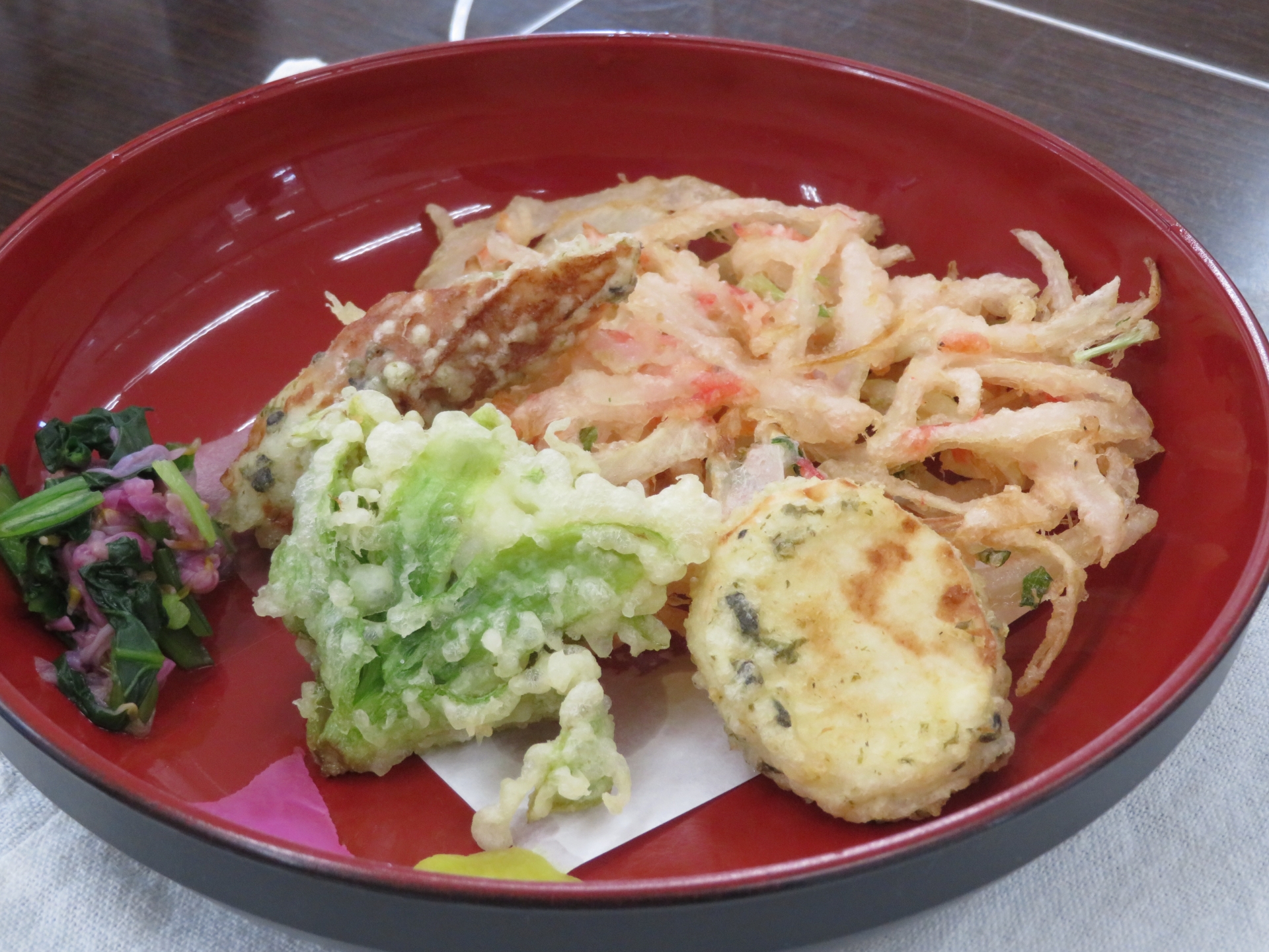 2024/03/21 リハブサロンDoo 蕗の薹が取れたので天ぷらうどんを作っちゃいました 3月19日と21日のうどんフェアに蕗の薹が採れたので、蕗の薹のてんぷらと、サクラエビを散らしたかき揚げ、ちくわ、山芋などを盛り込み、天ぷらうどんにしてみました。大変好評をいただき、皆様口々に4月の山菜天ぷらフェアが待ち遠しいと言っておられました。