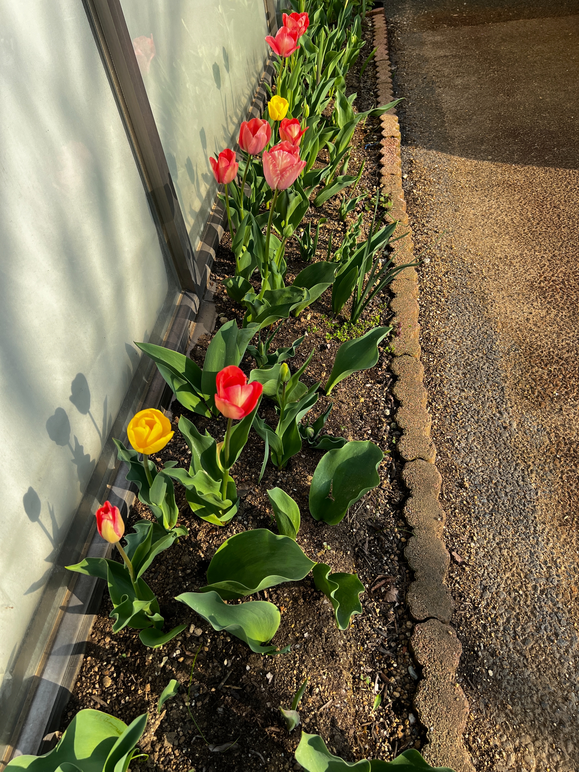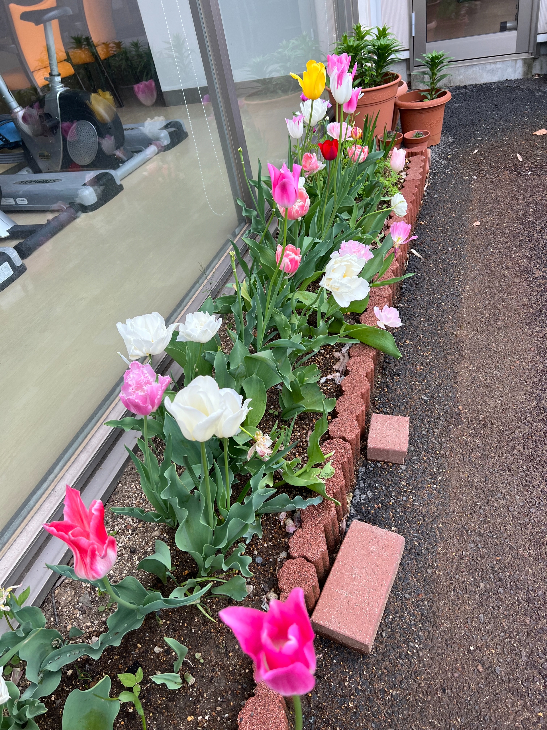 2025/04/12 リハブサロンDoo 今年も施設のチューリップが咲き始めました リハブサロンDooのWです。お花見から帰ったら今年もまたチューリップが咲いていました❣ 暖かい陽気に誘われて、我慢できずに咲いたのでしょうか?毎年この花壇にはチューリップを植えています。 昨年と比べて、どんな色・形のチューリップが咲くか利用者様と共にとても楽しみにしております。 昨年のチューリップも載せてみますのでどうぞ楽しんで見てください。