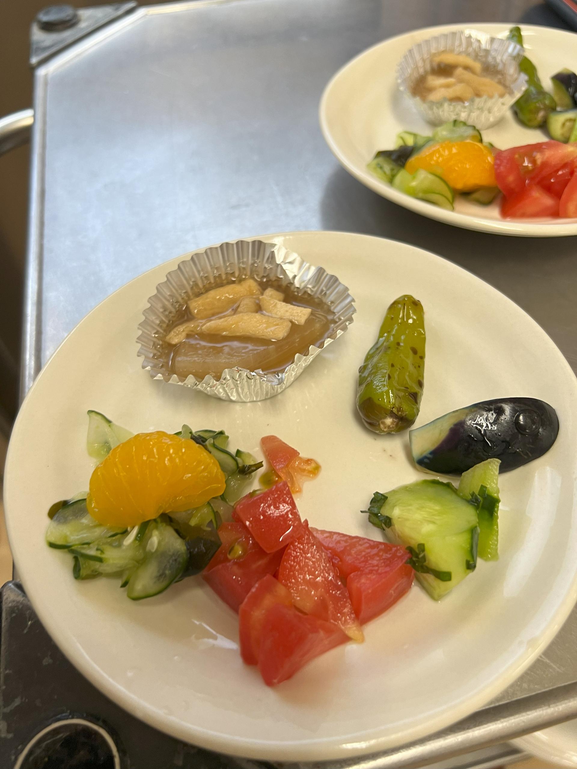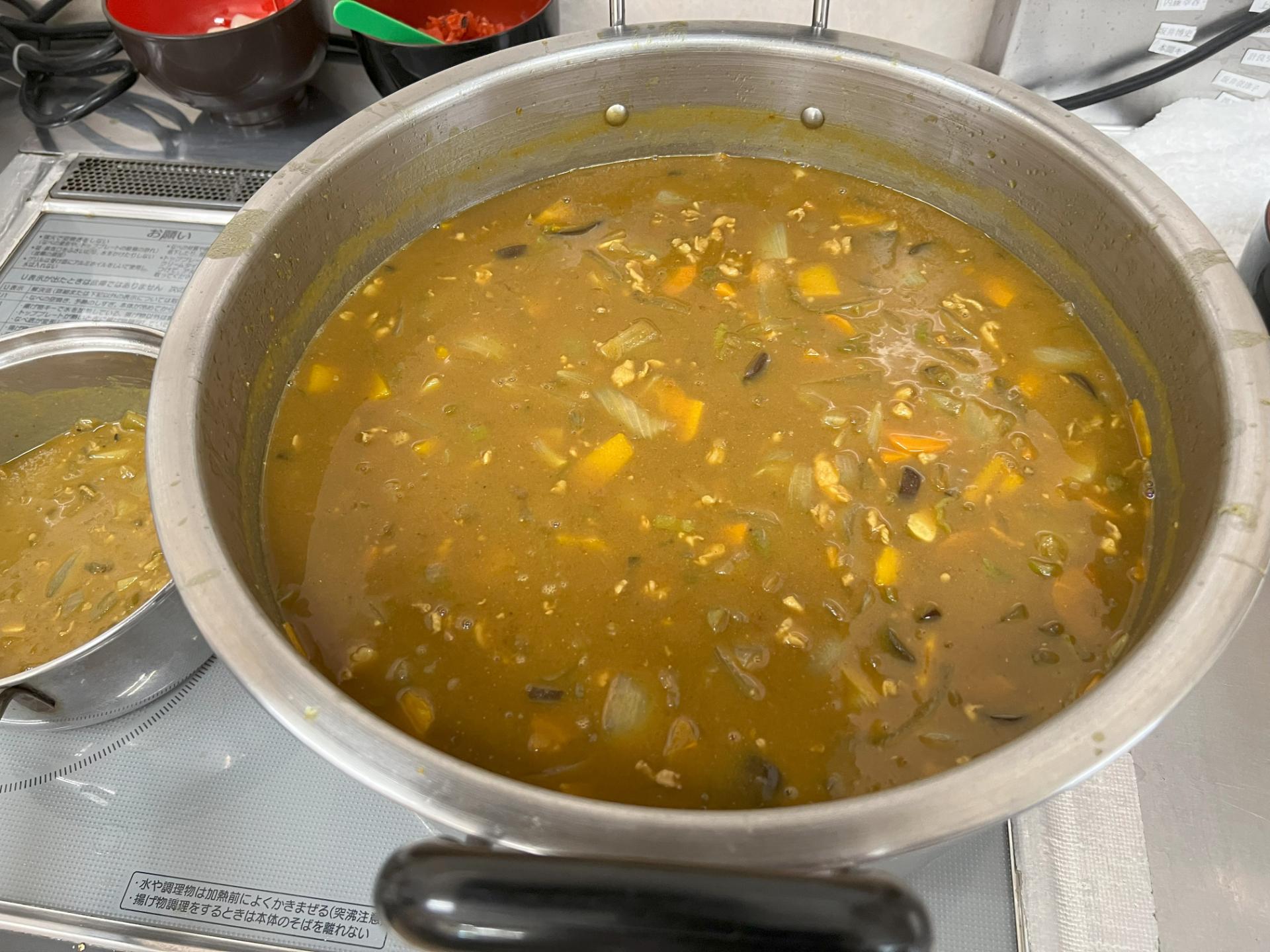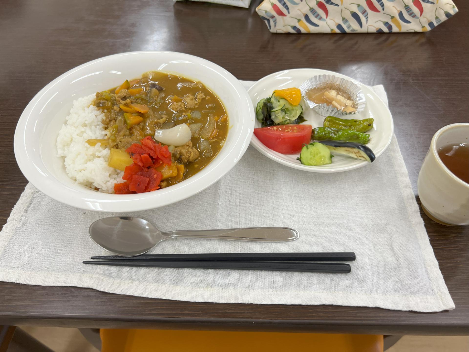 2025/07/24 リハブサロンDoo 今年も夏野菜カレー週間がやってきました❣ 皆さま夏バテなどしておりませんでしょうか?リハブサロンⅮoo・サロンDooでは毎年7月に夏野菜カレー週間を設けております。通常のカレーにかぼちゃ・ナス・シシトウ・トマトなど夏野菜をふんだんに入れて夏バテ防止に努めております。普段小食の方も沢山召し上がり、飲み物のように掻き込んでおりました。毎日カレーですが良いですか?の問いにも、カレーが一番食べやすくて好きだと言っては、皆さま残さずに召し上がってくれて大満足です。