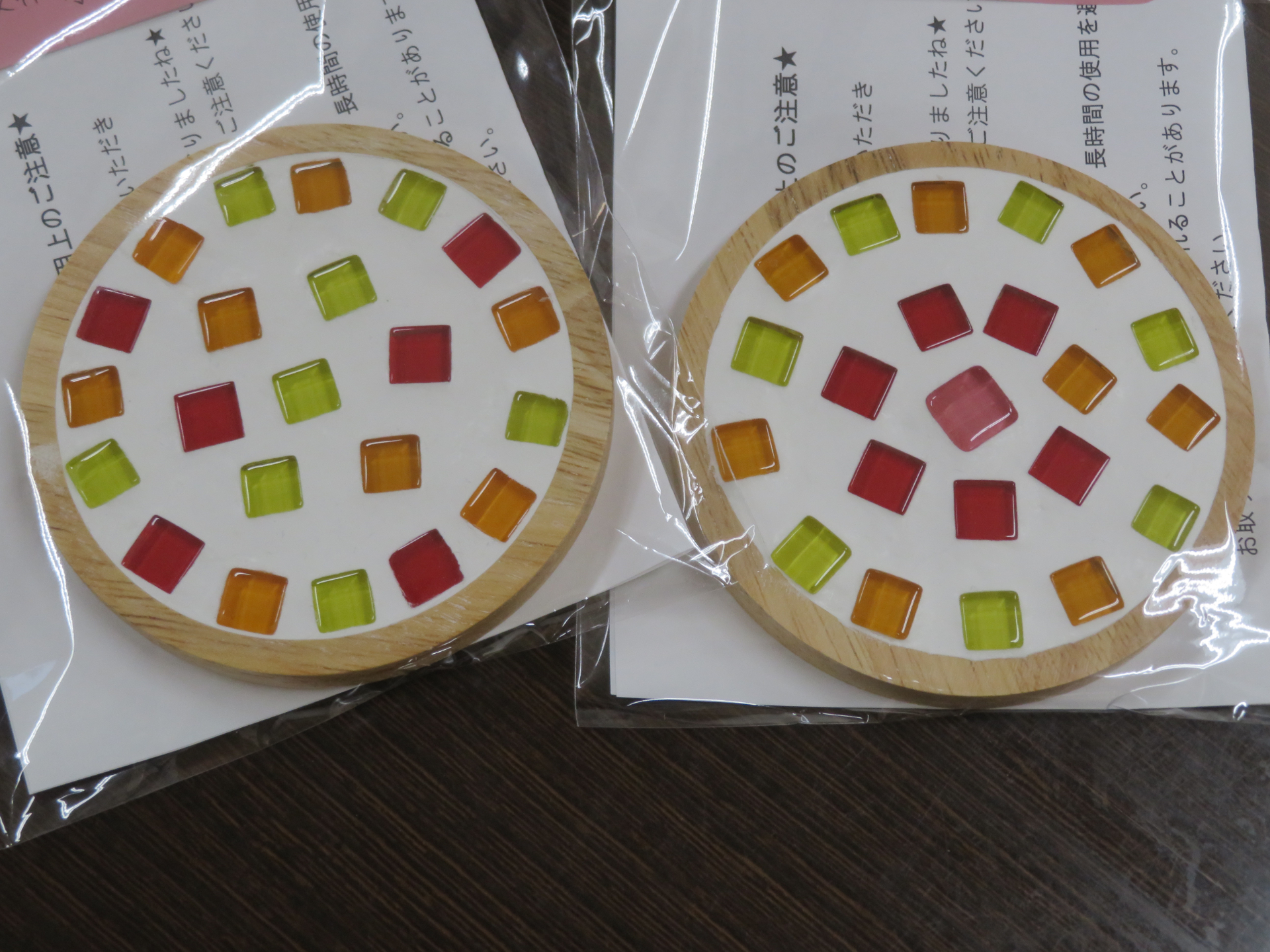 後日、乾燥させ防水のニスを塗ったコースターを皆様にお渡ししました。