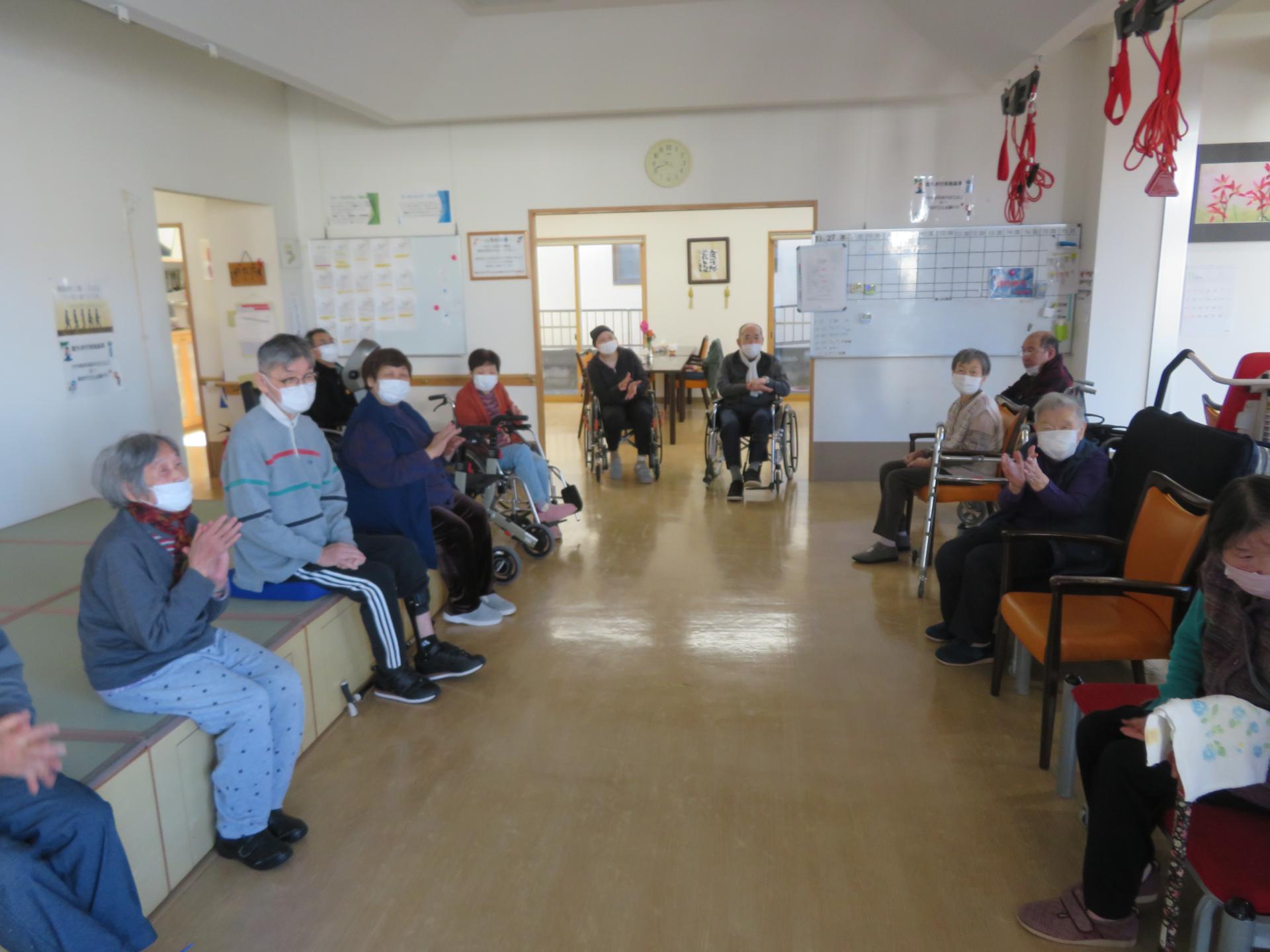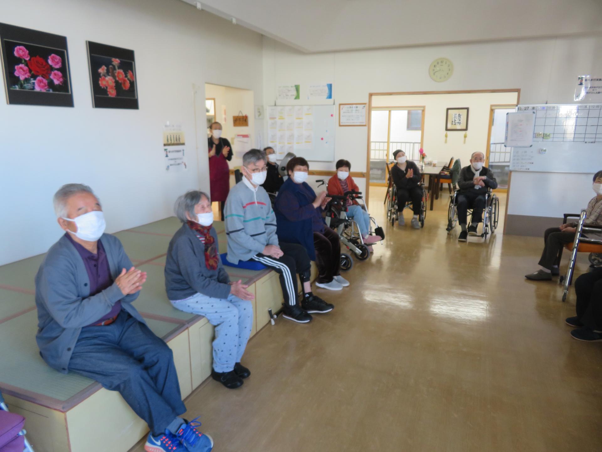 利用者様からは思わず大きな拍手が湧き起こり、その拍手の輪が施設全体をふんわり優しく包み込みました。