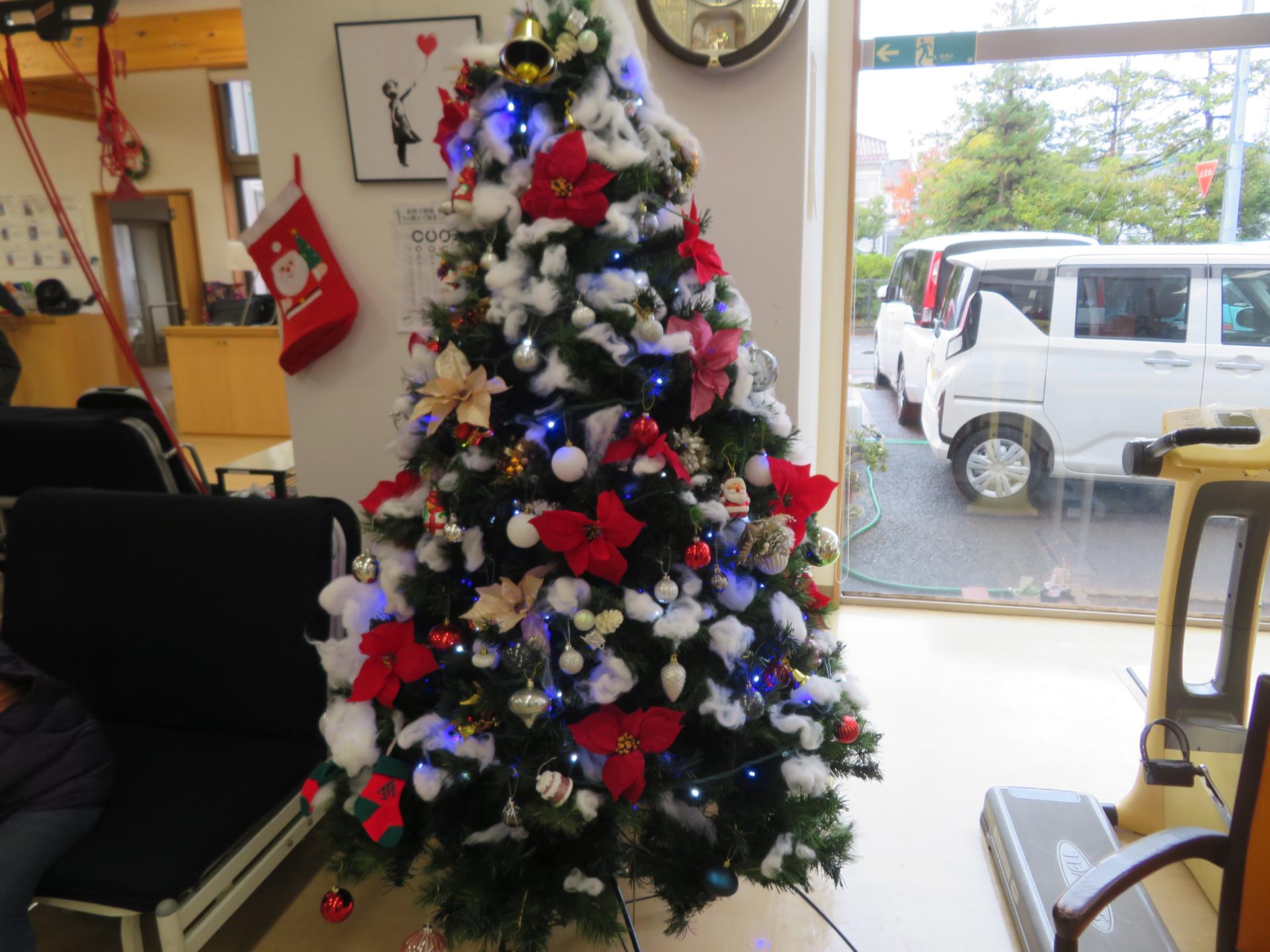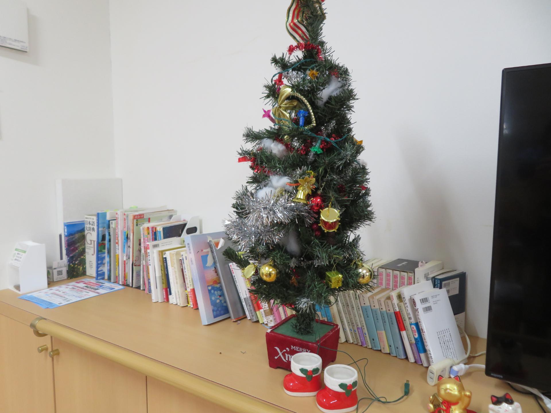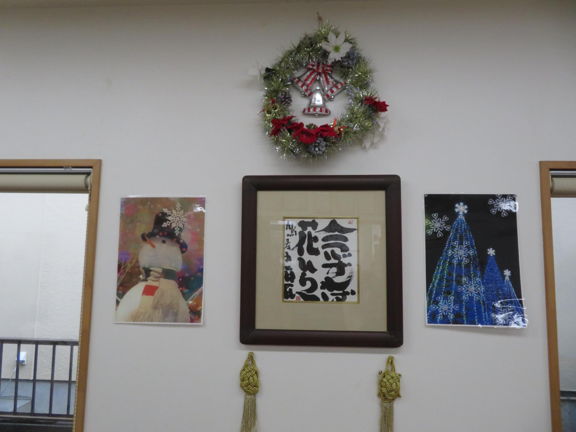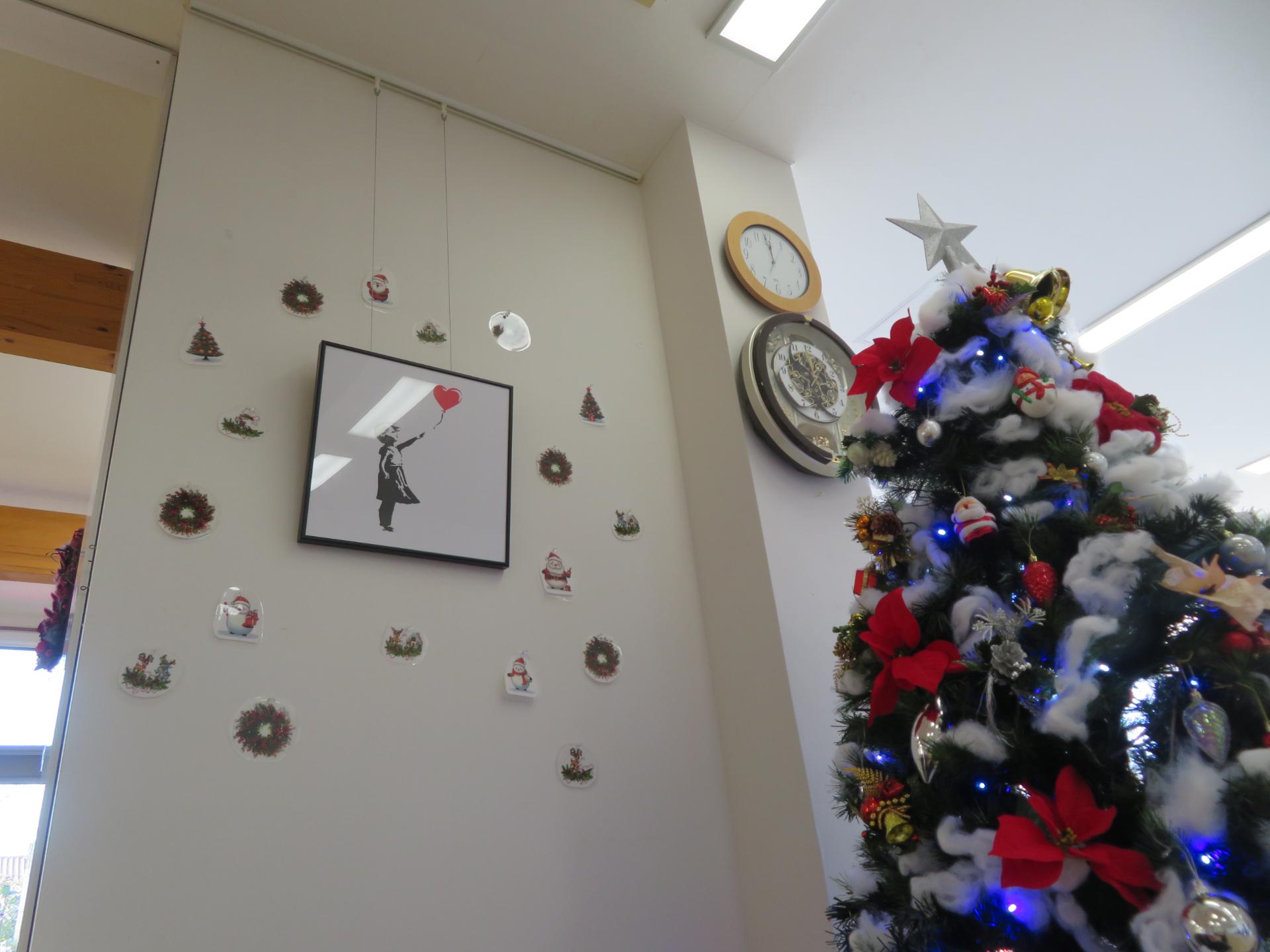 フロアのあちこちには小さなツリーや可愛いサンタさんのオブジェが並び、壁には職員が描いた大きな雪だるまがドーンと微笑んでいます!