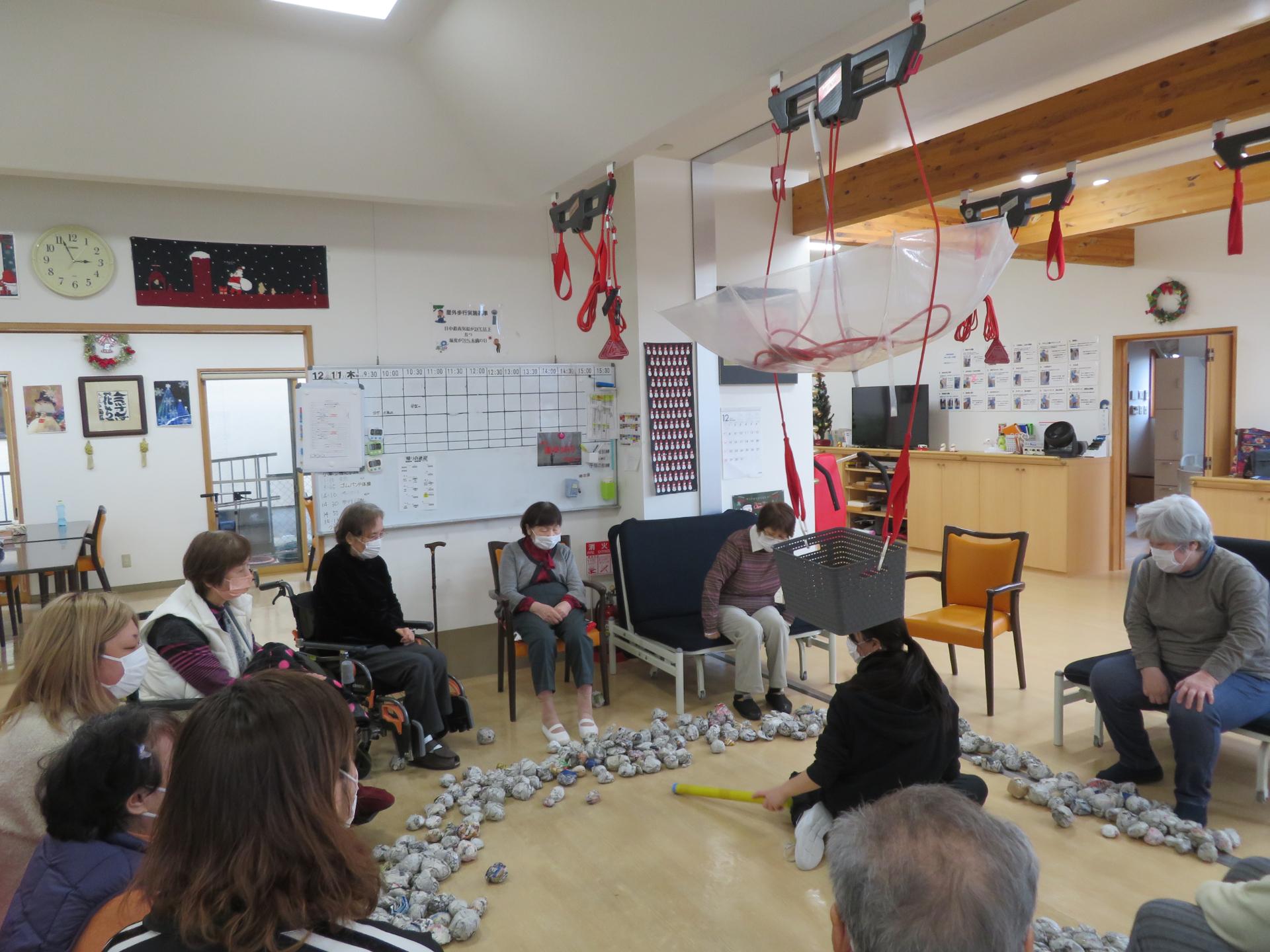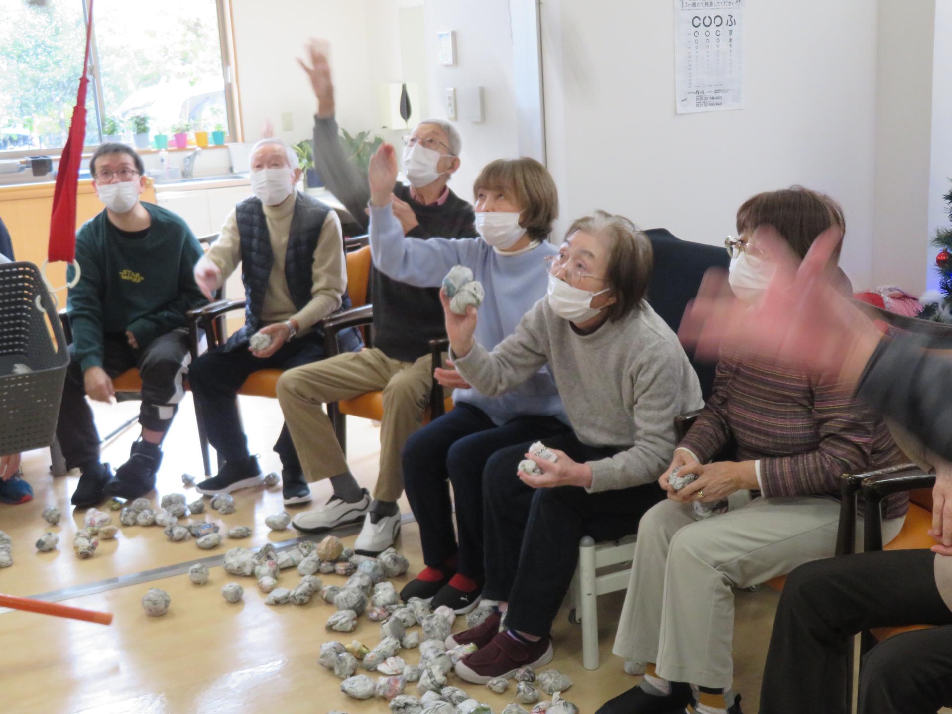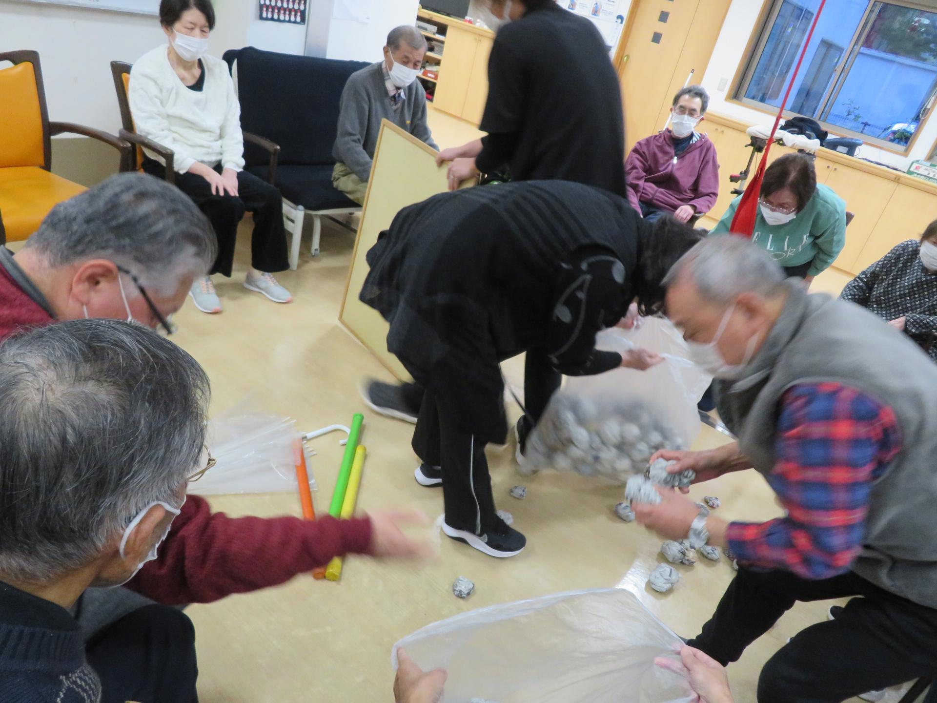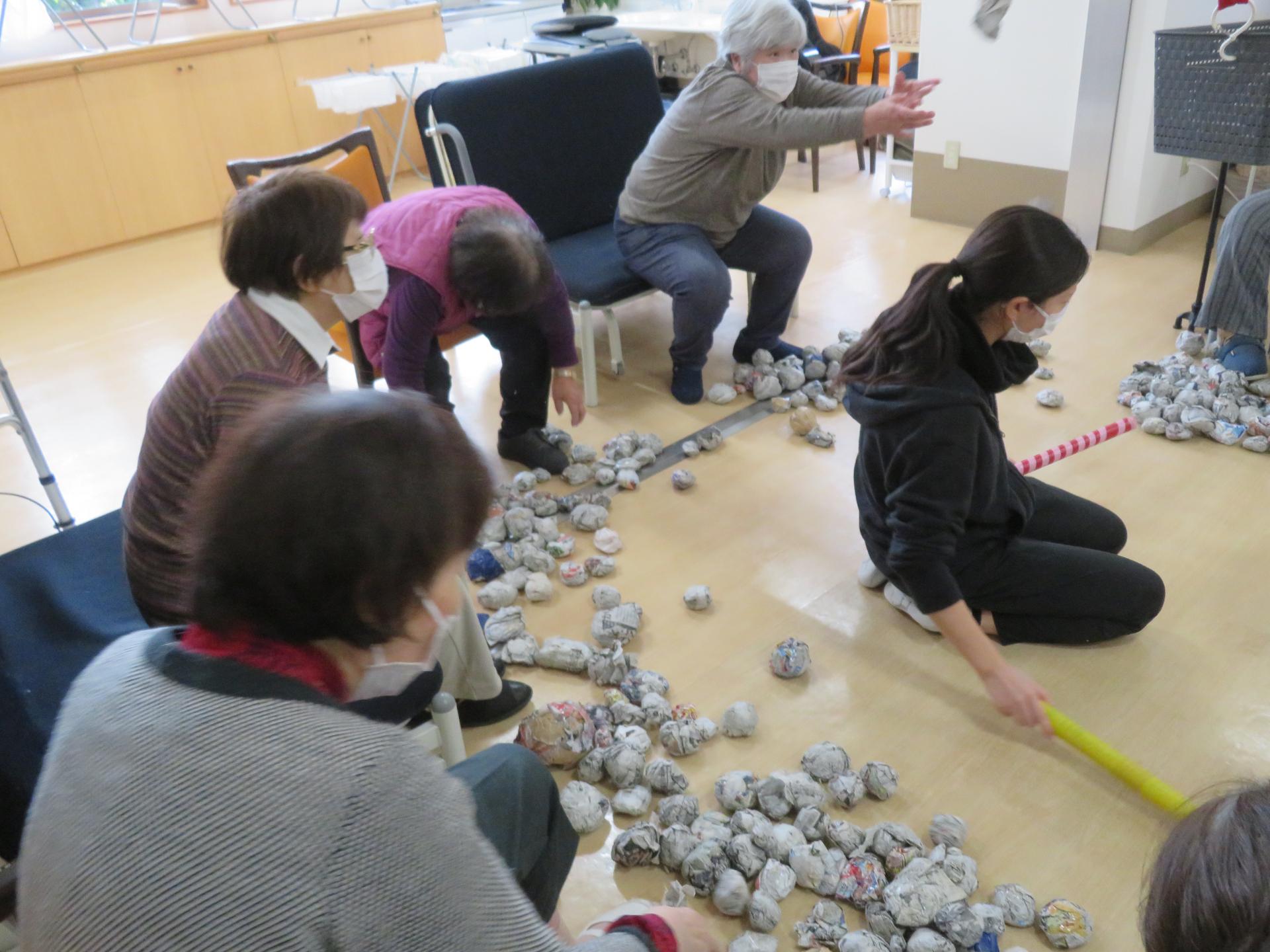 利用者さんと一緒に作った新聞紙玉は、なんと約500個!