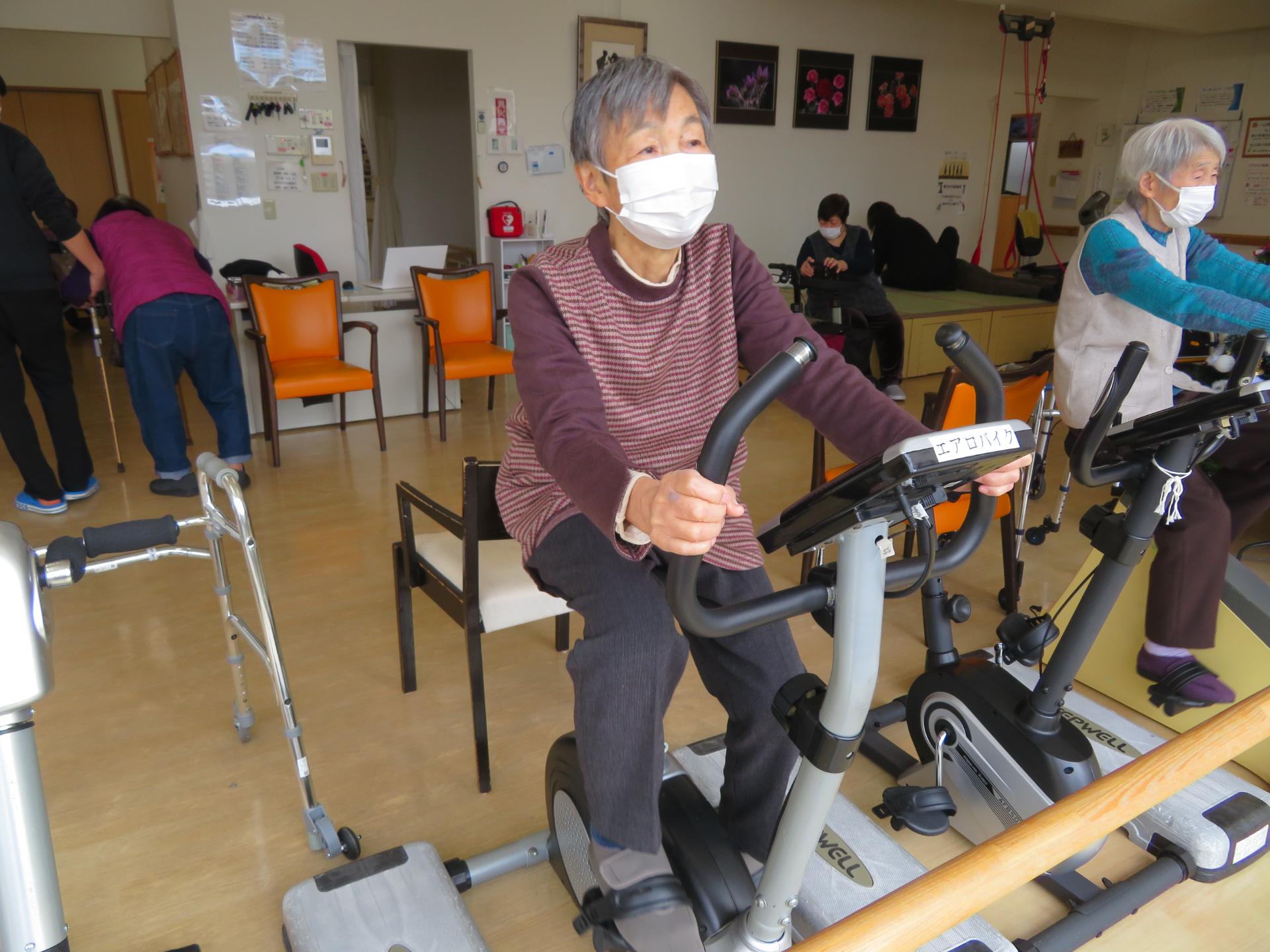 その後は、利用者様それぞれの目標や状態に合わせた個別リハビリやマシントレーニング。