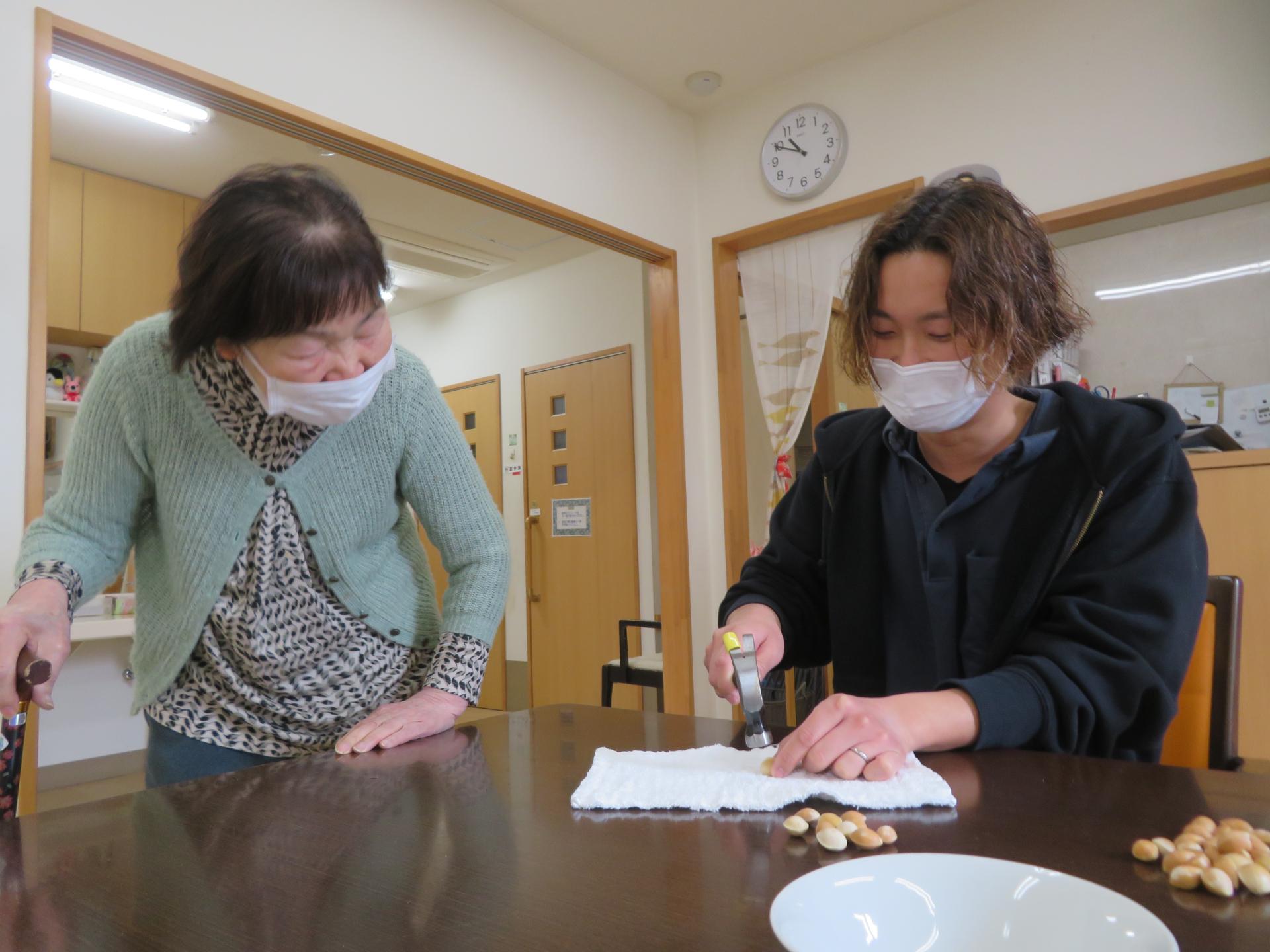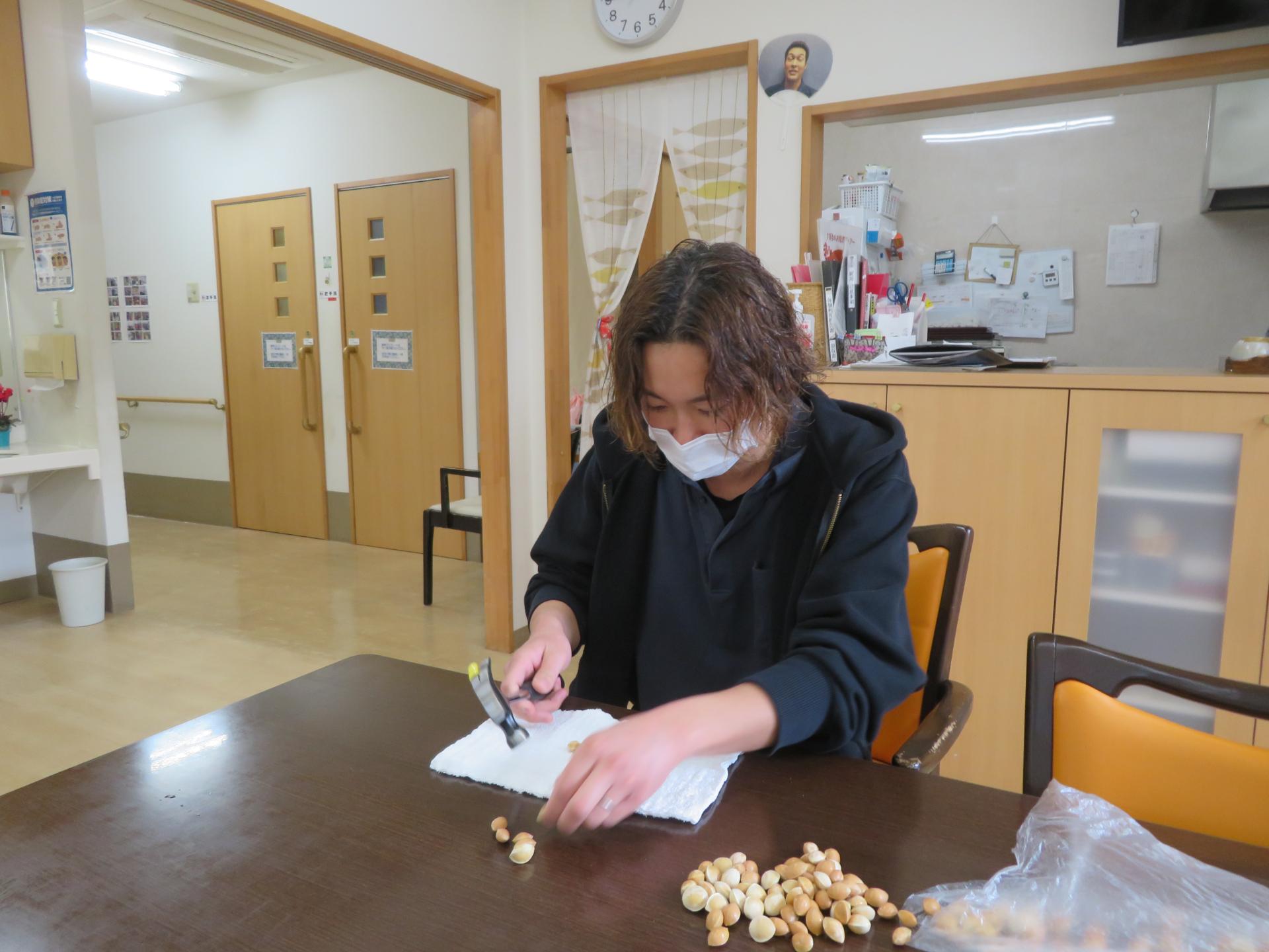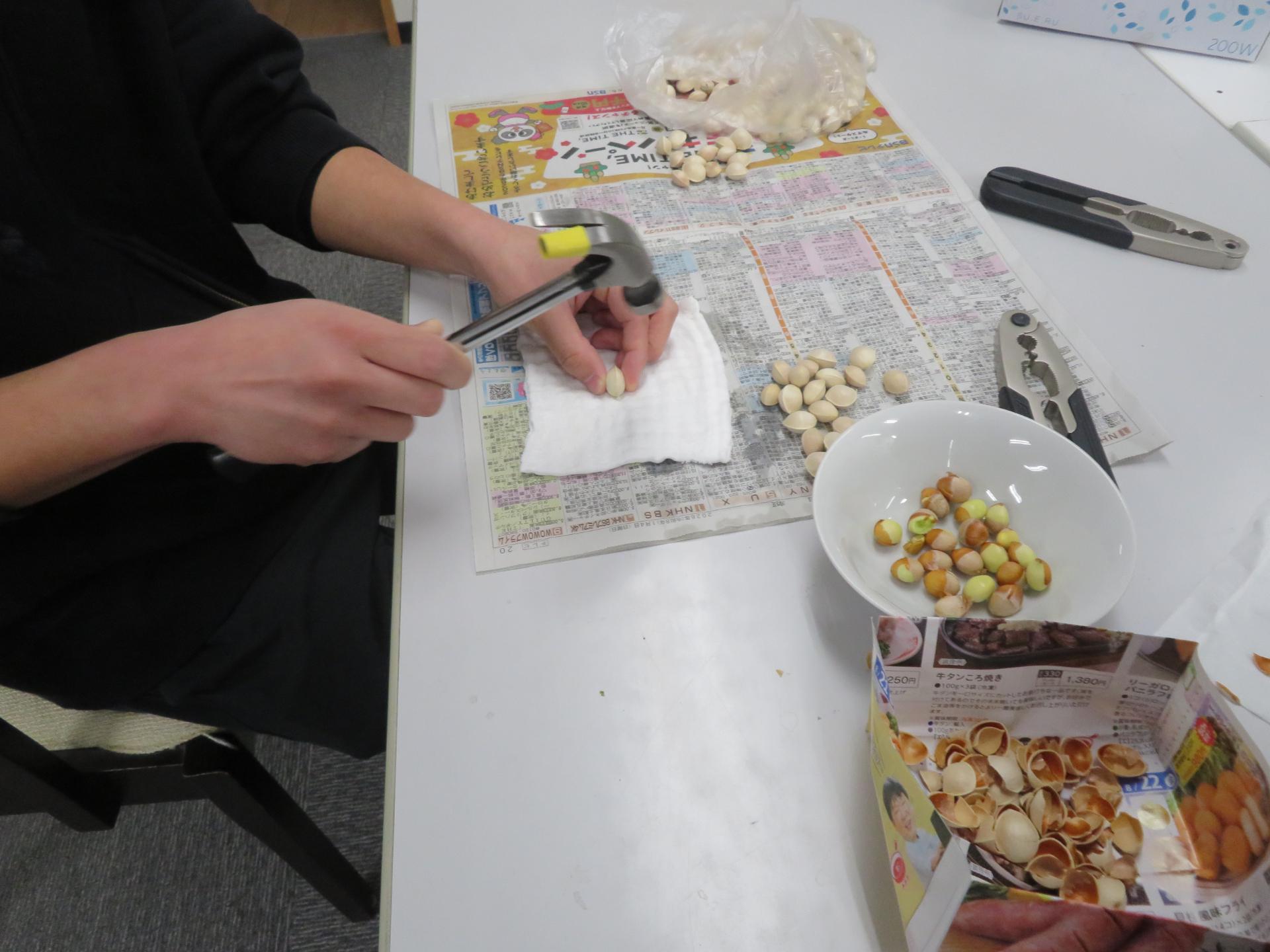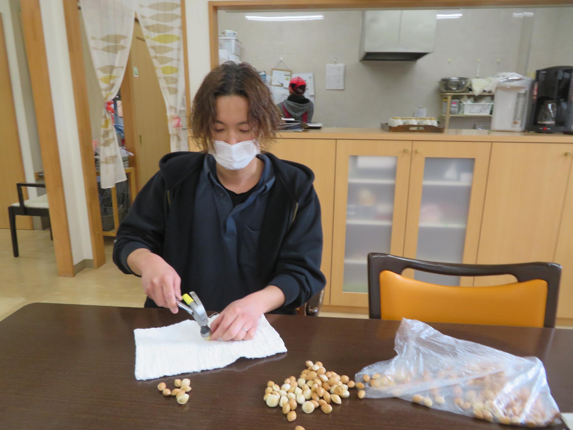 銀杏をハンマーで割っているから。