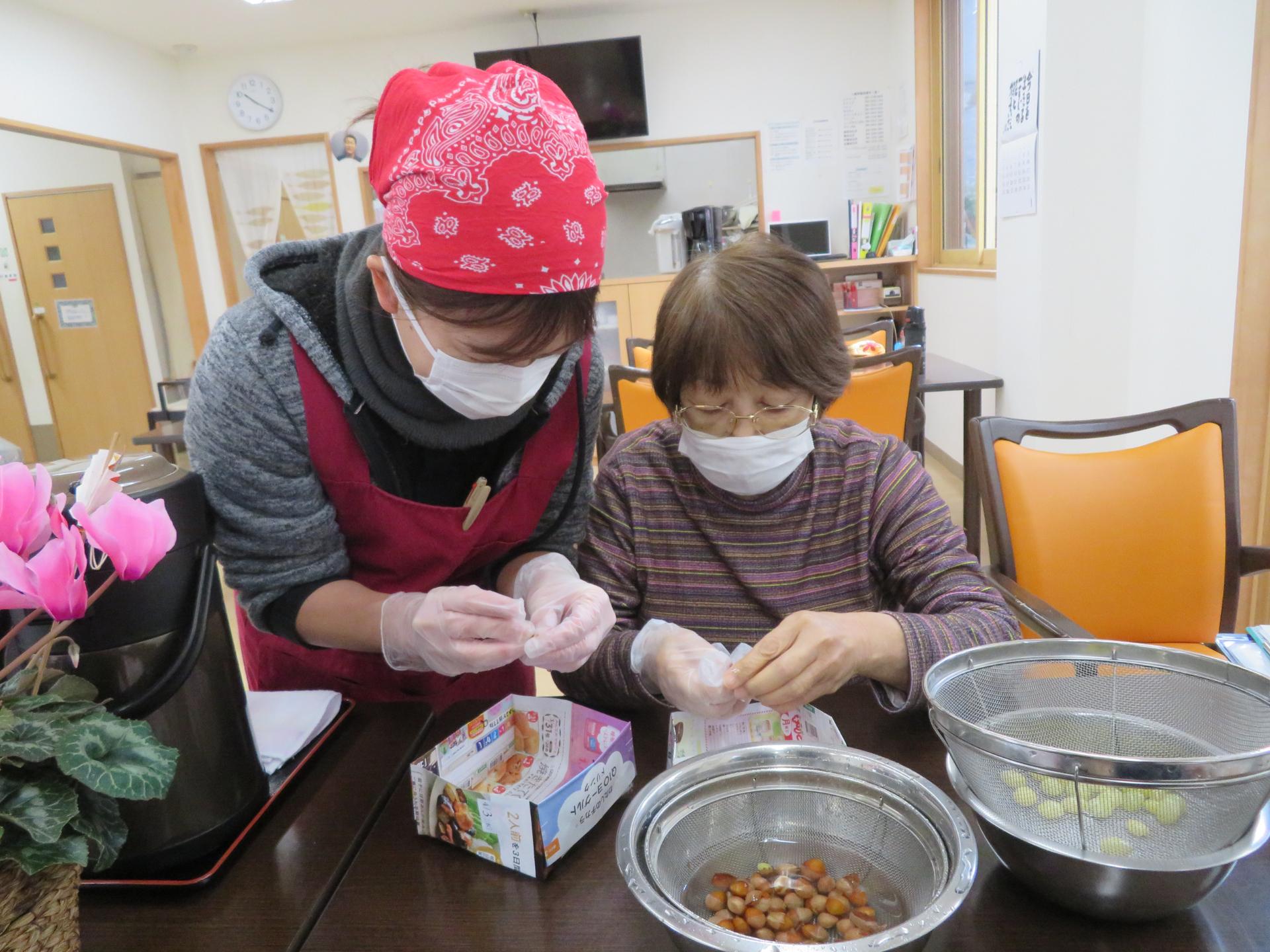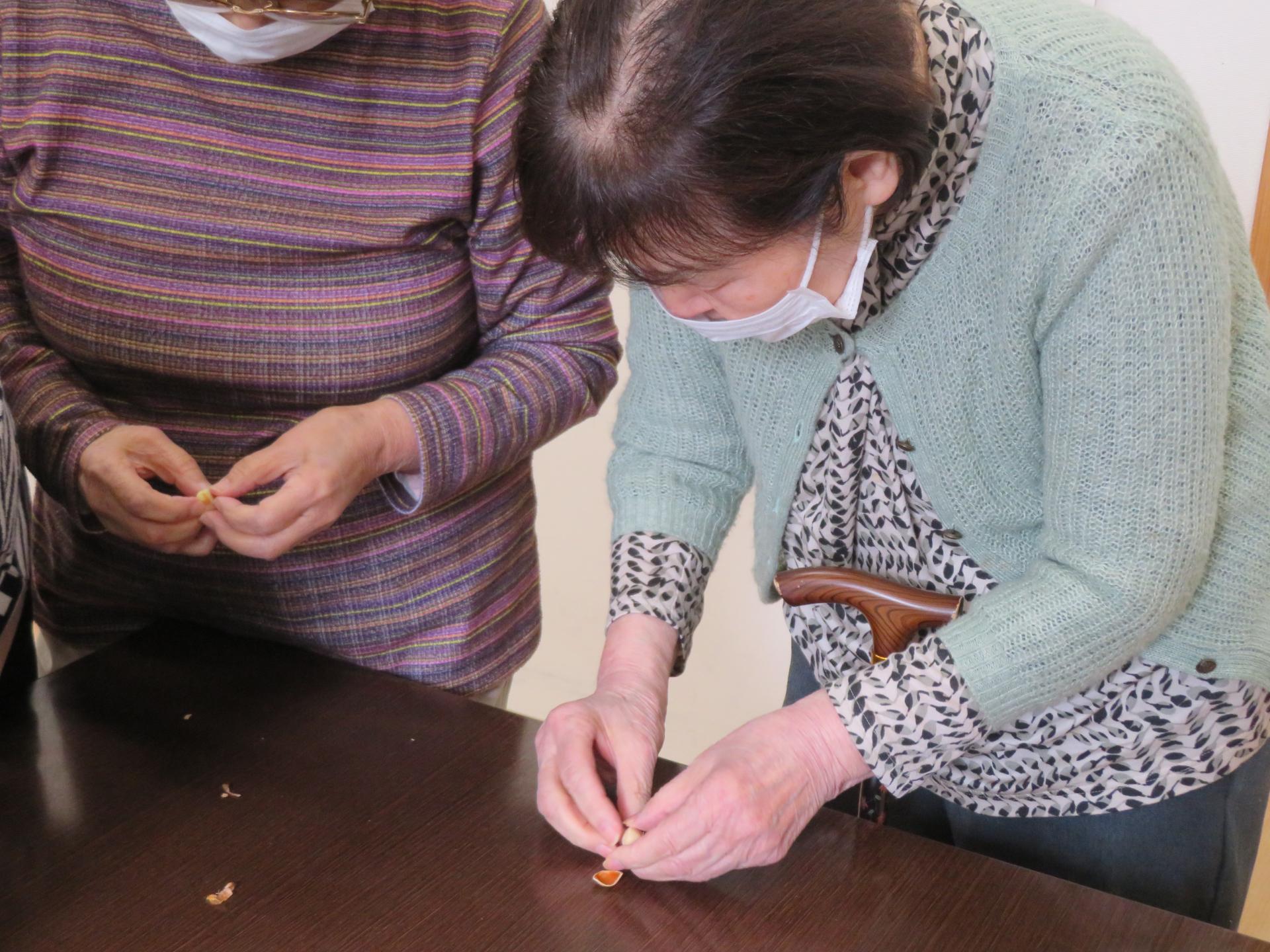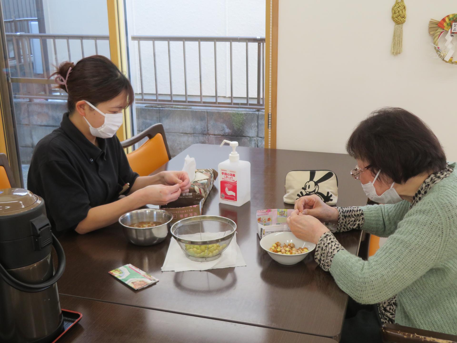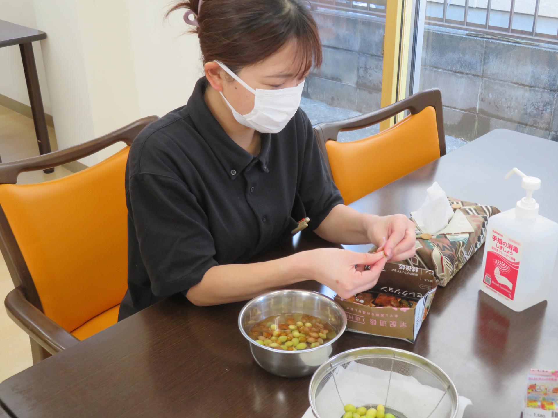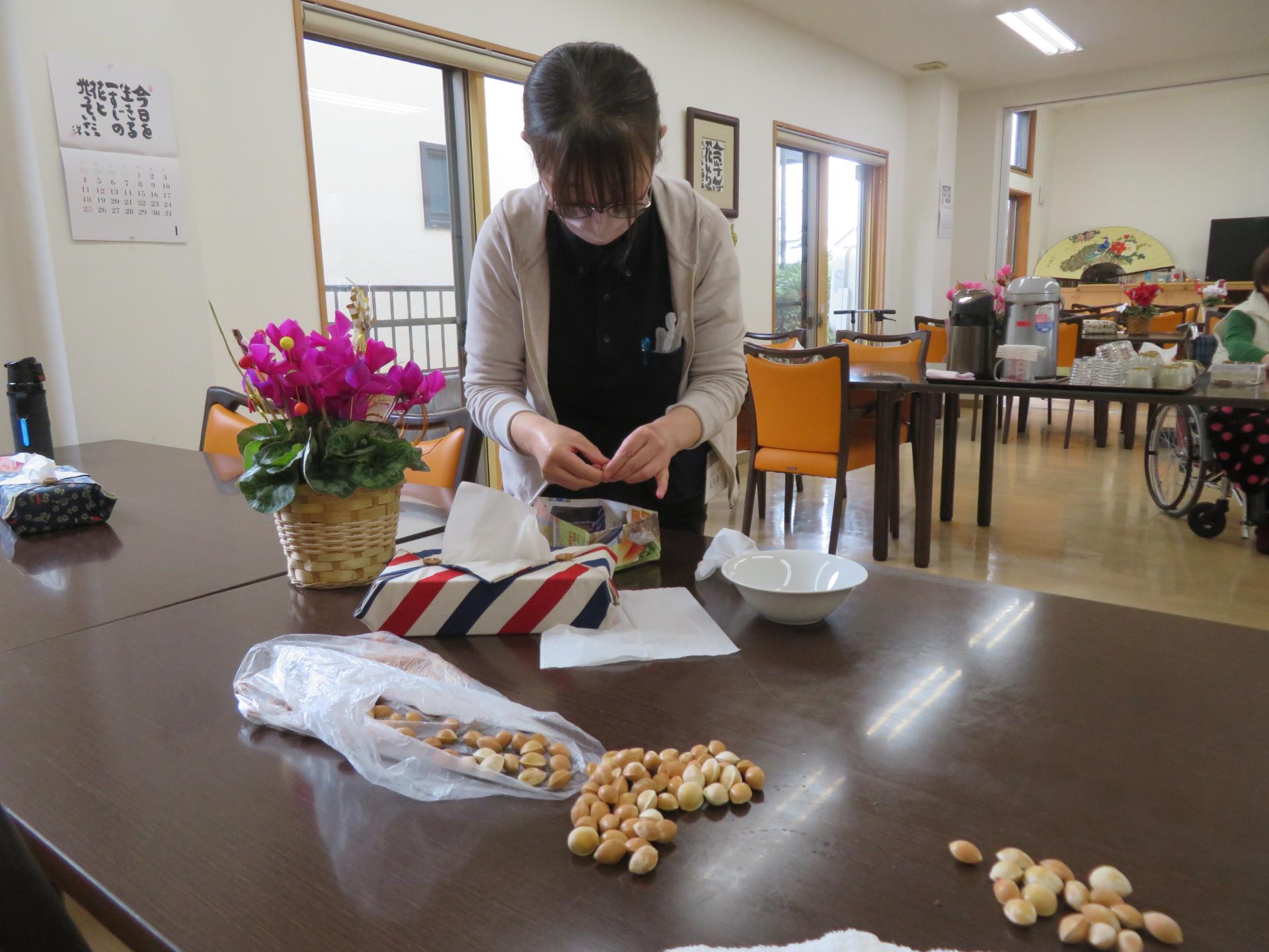 今度は薄皮剥き作業をお手伝いしてくださいました。感謝✨