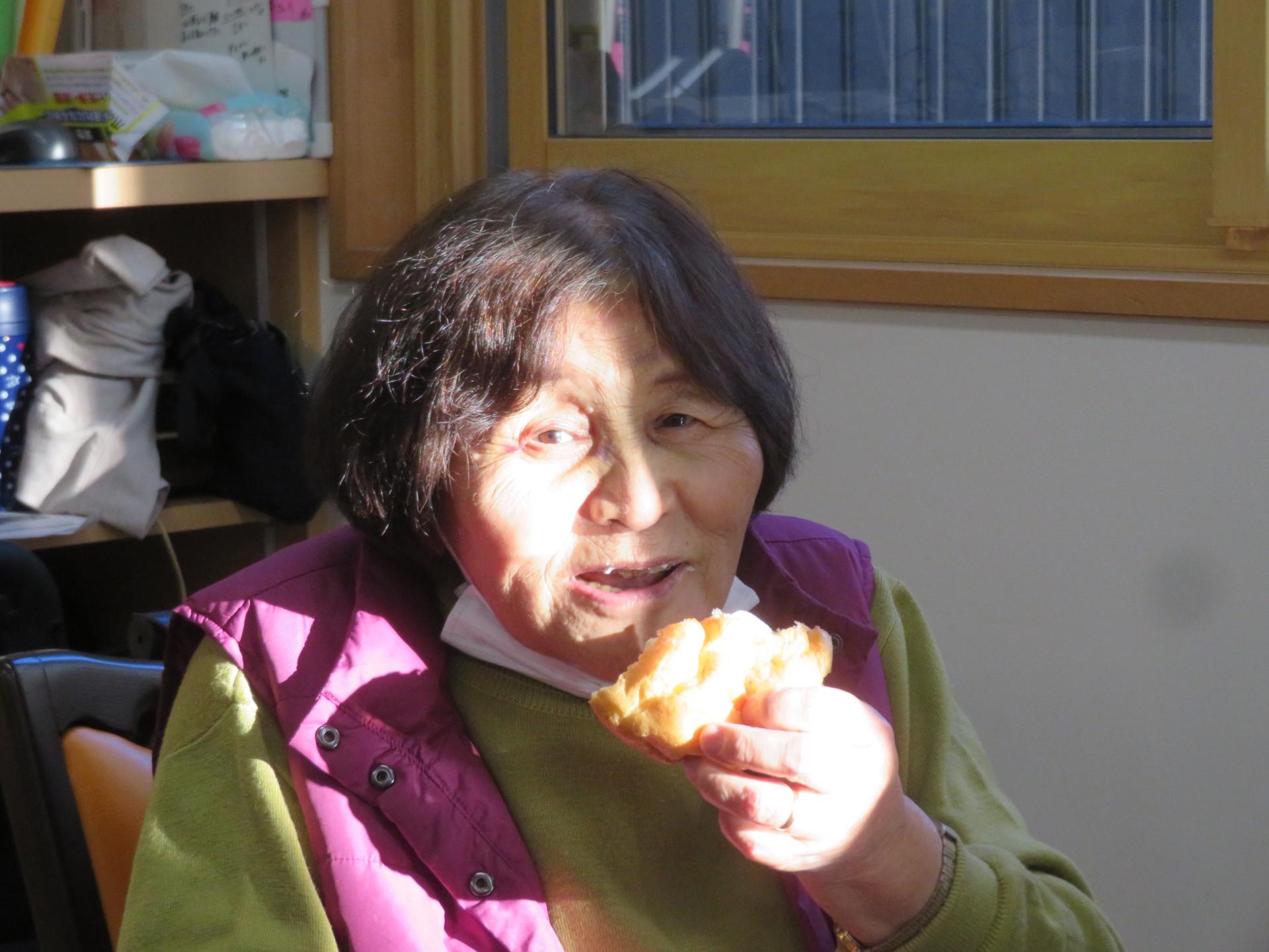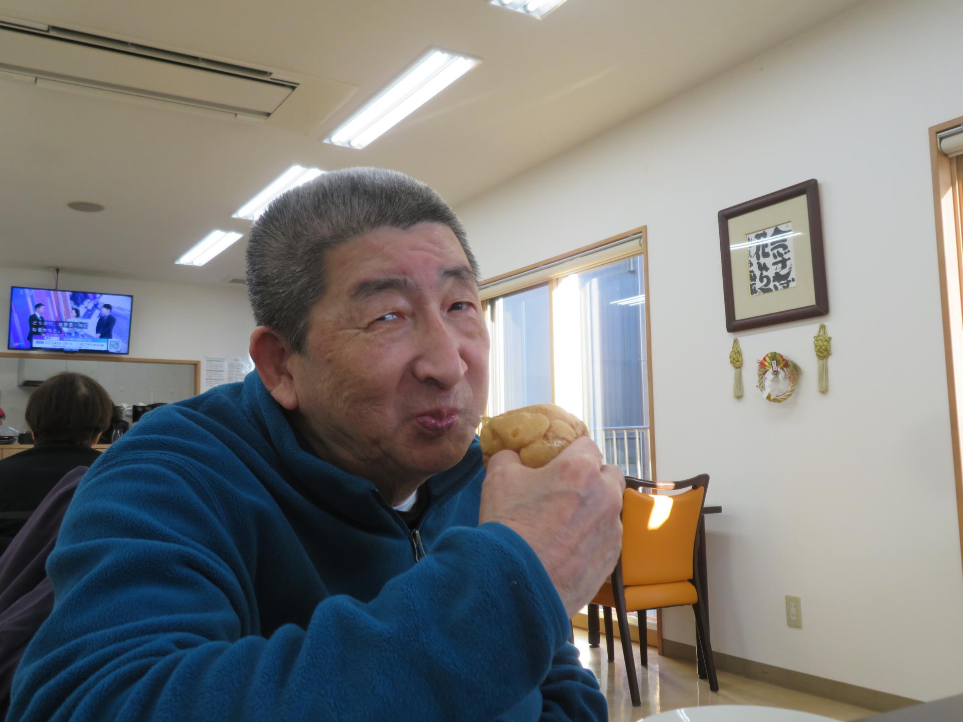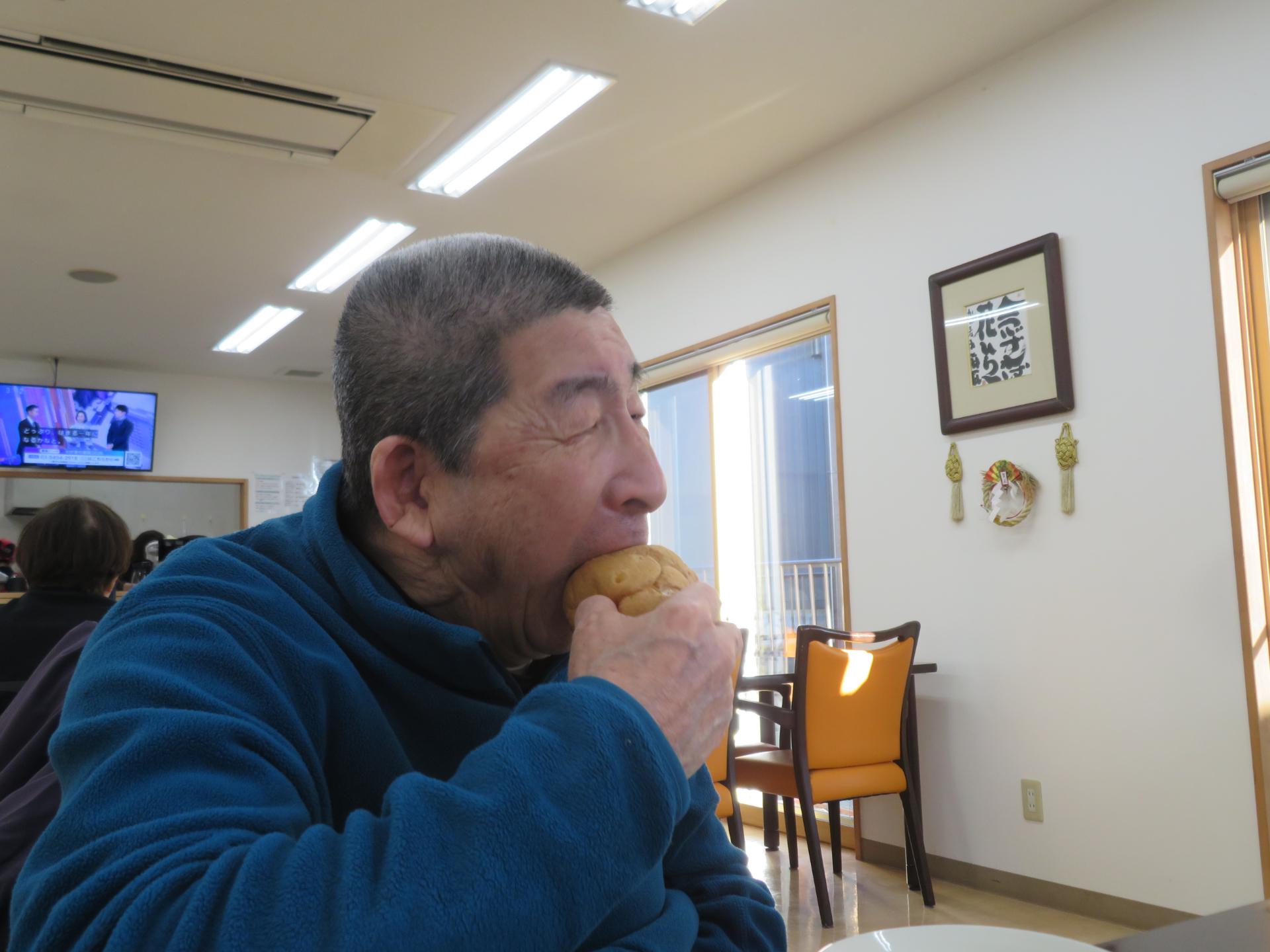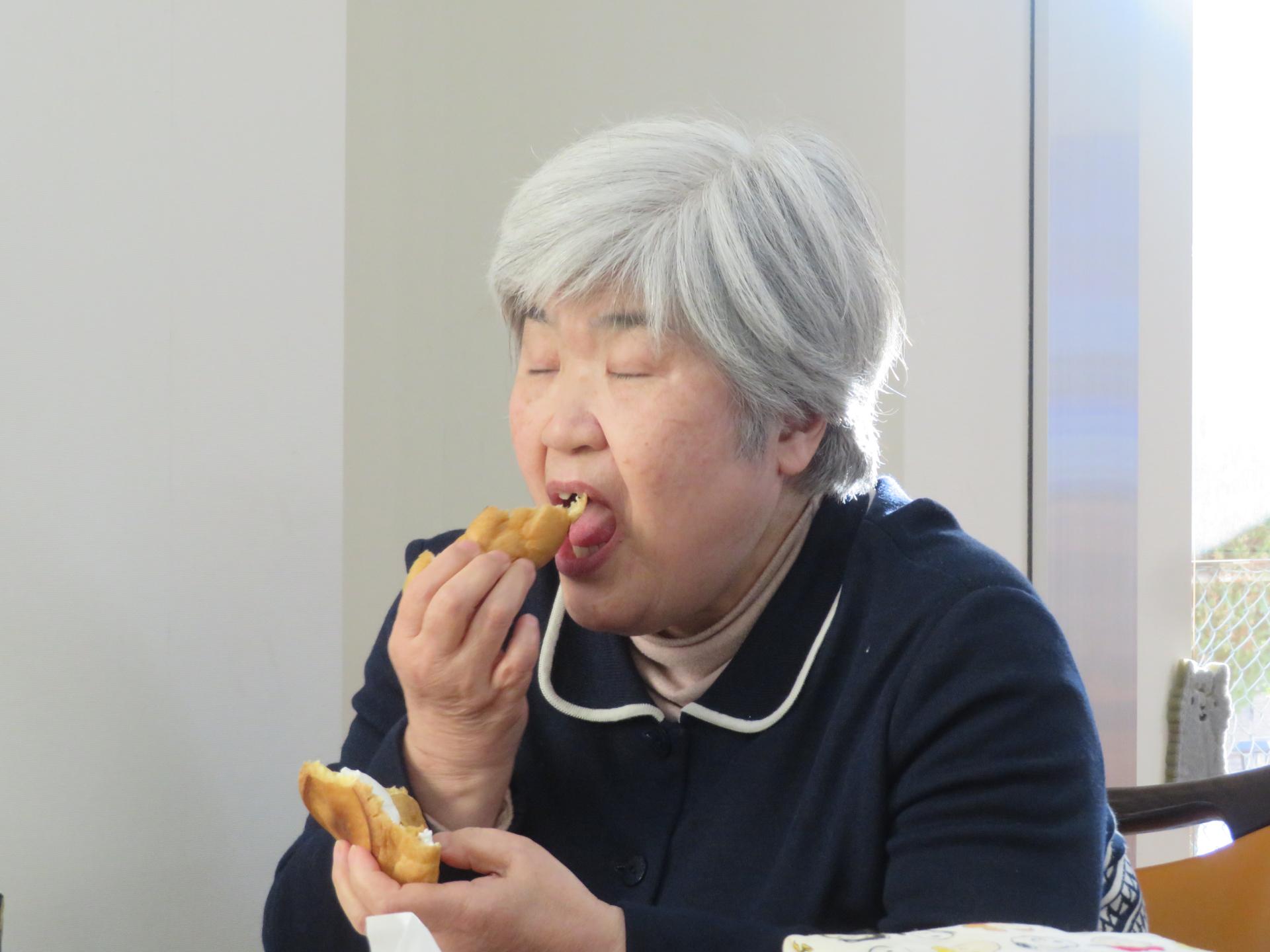 頬張る、頬張る。