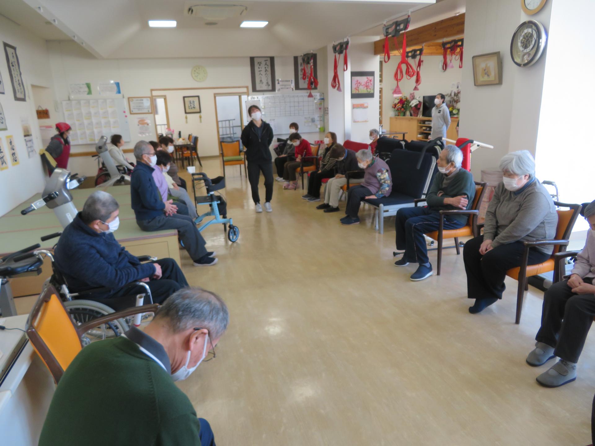 施設向かいのむらさき公園への避難訓練や、2階への垂直避難など、