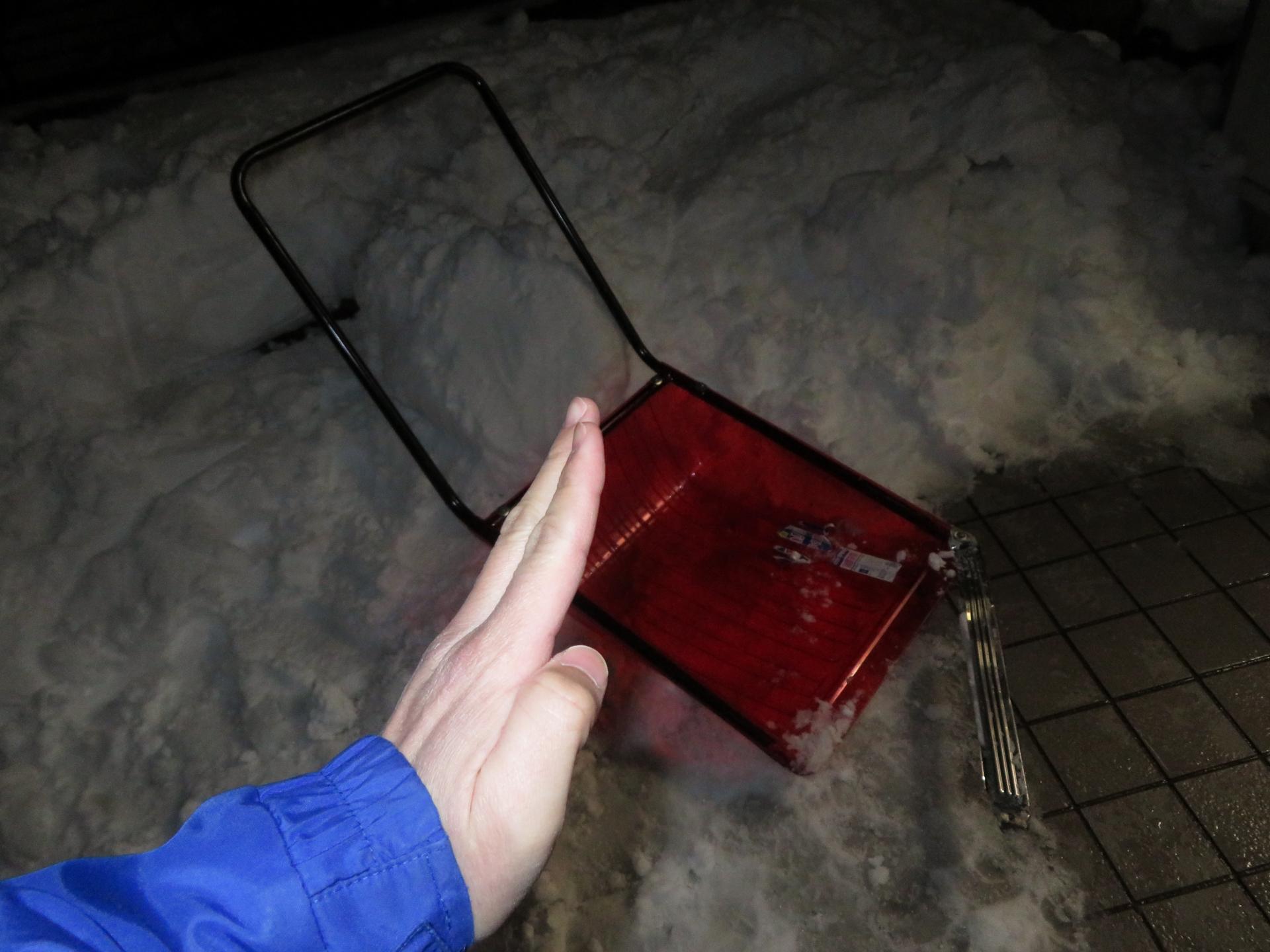 鉄スコップを握りしめながら、