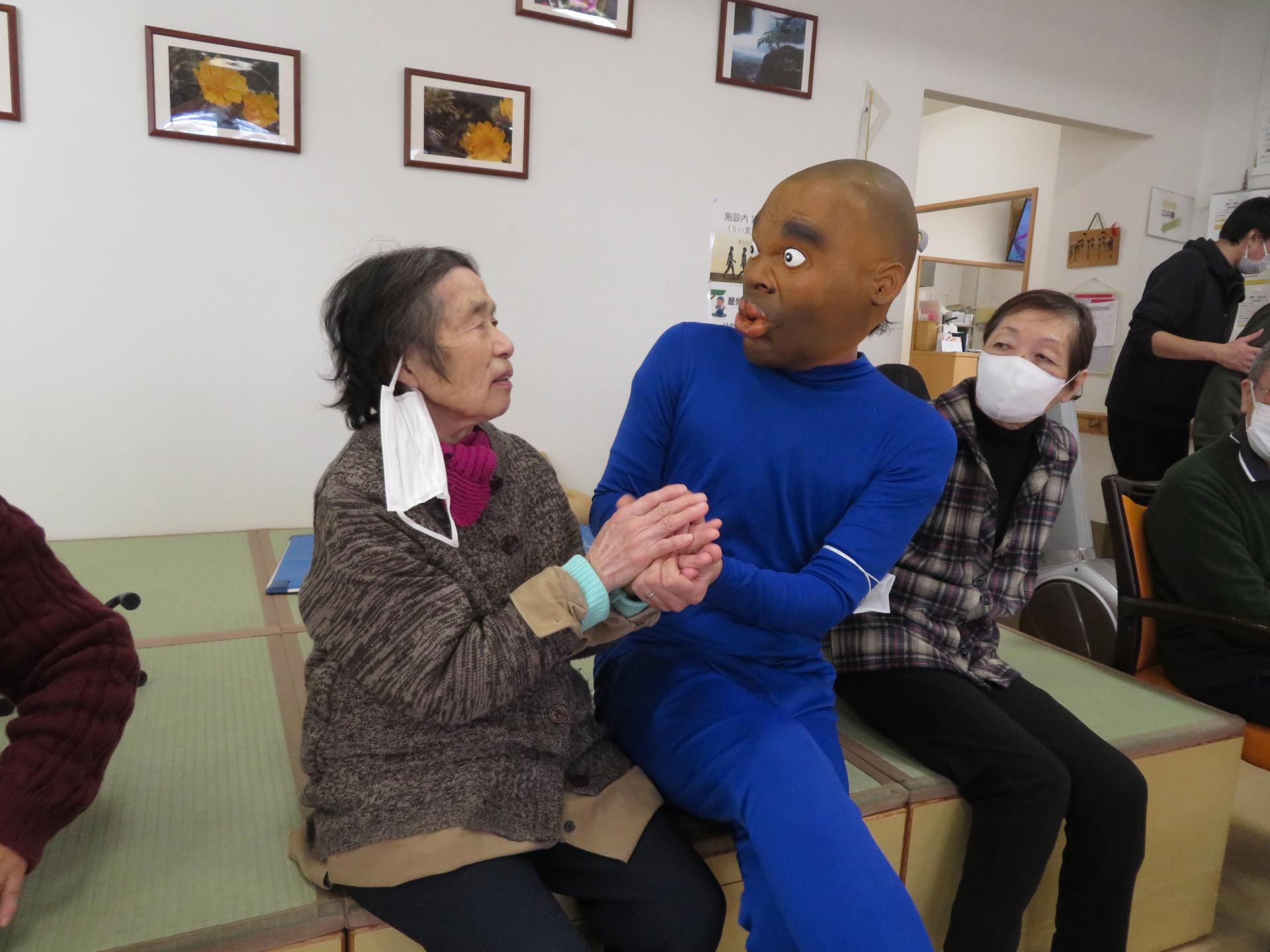 ちょっと吹いちゃう利用者さん。