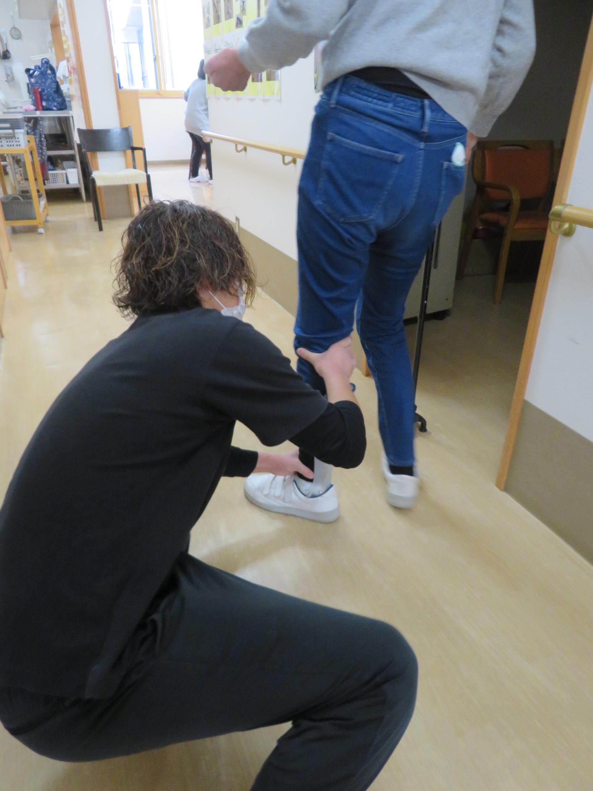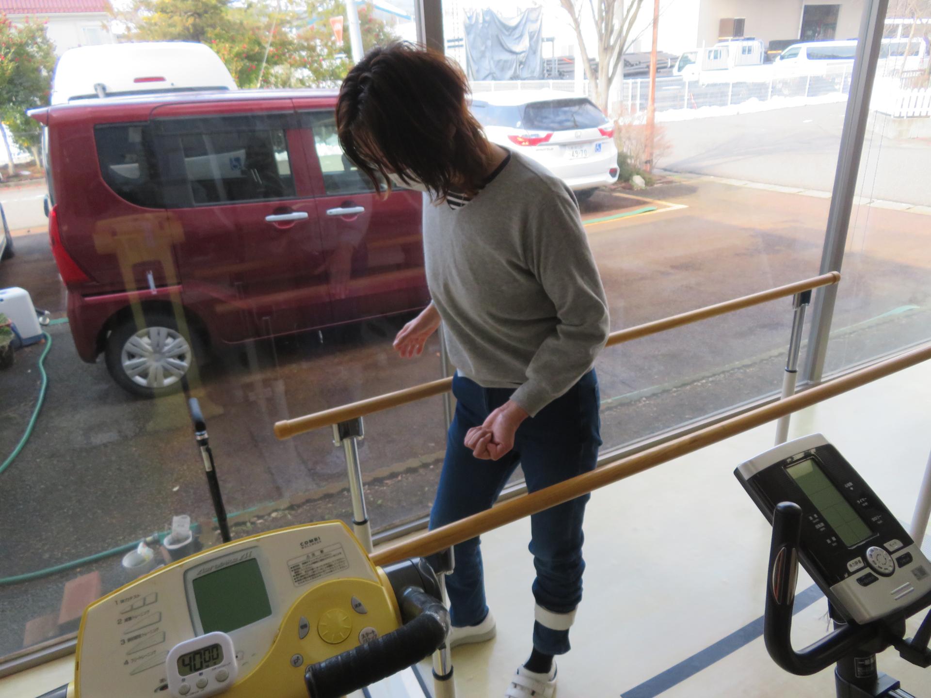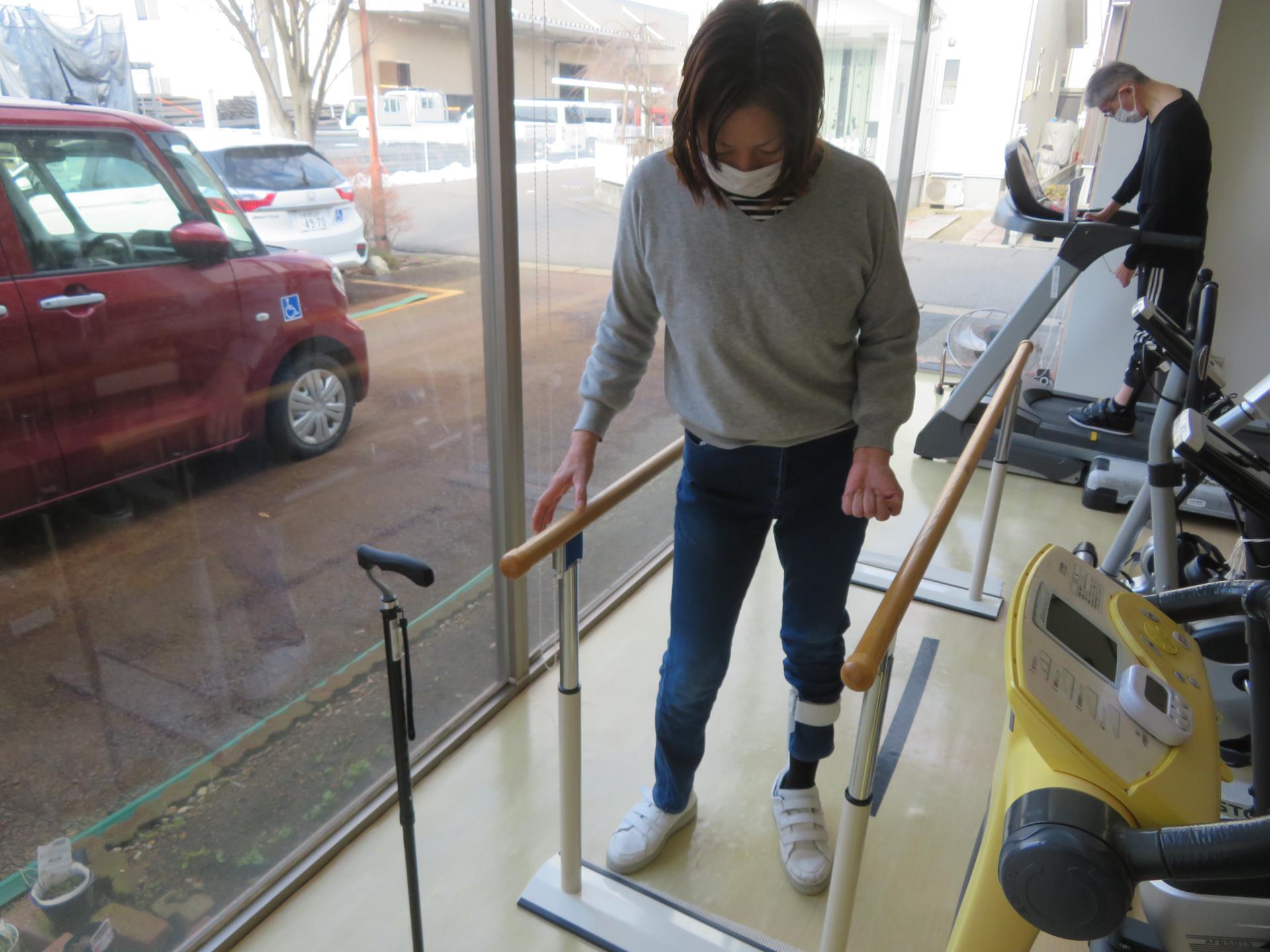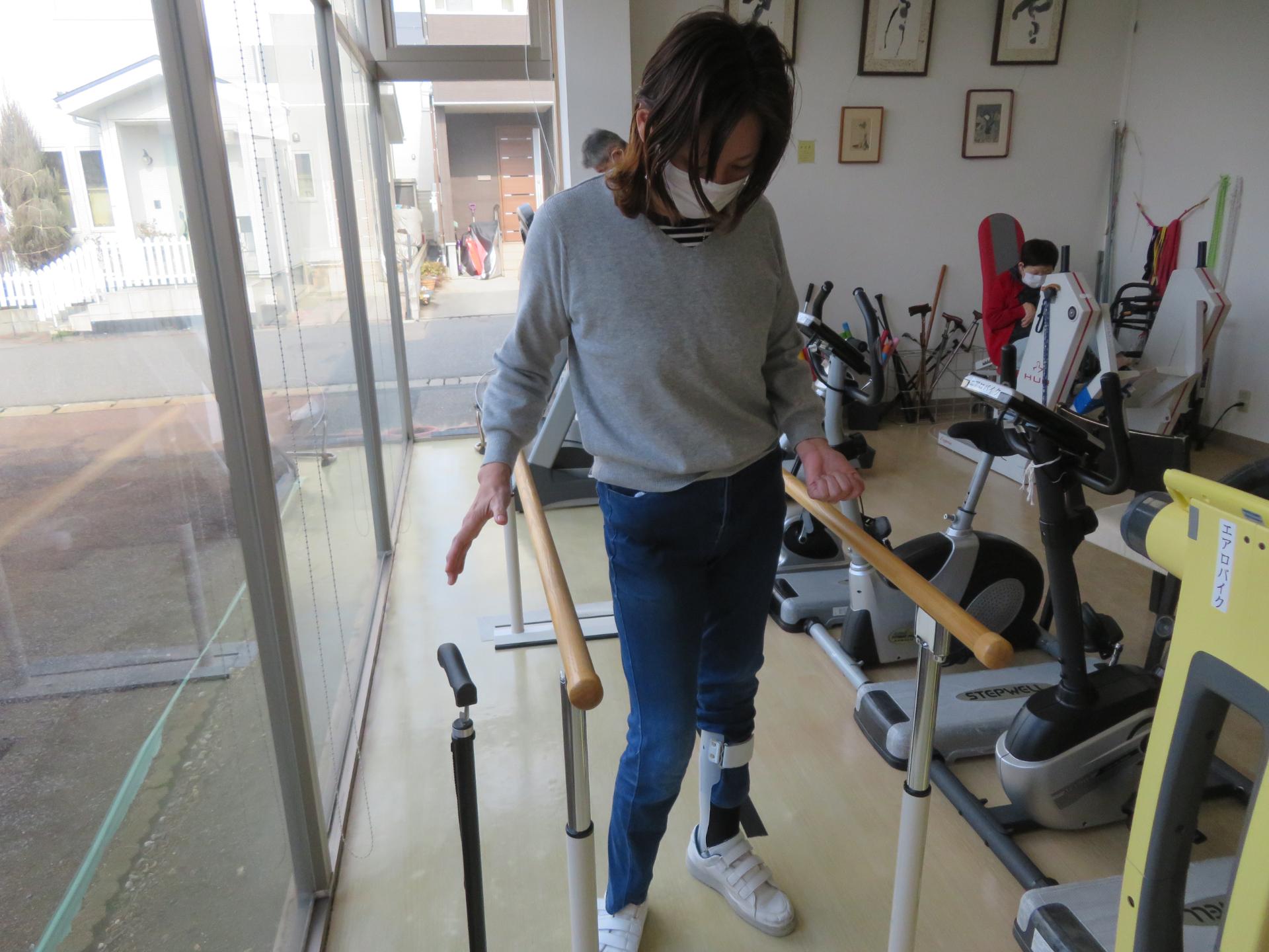 この方は平行棒内で自主的に体重をかける練習や、足を振り出す練習、歩行練習に日々取り組まれています。