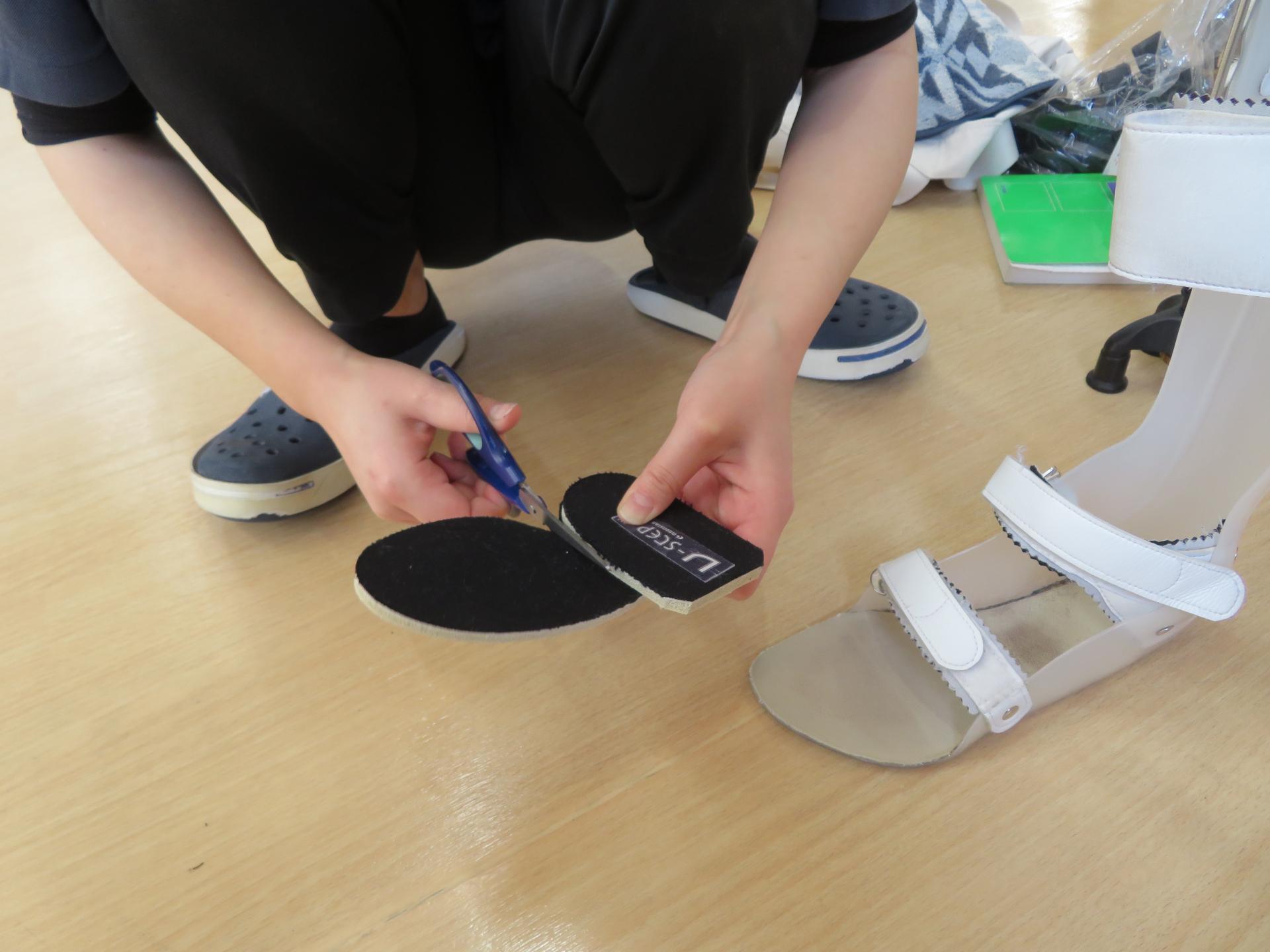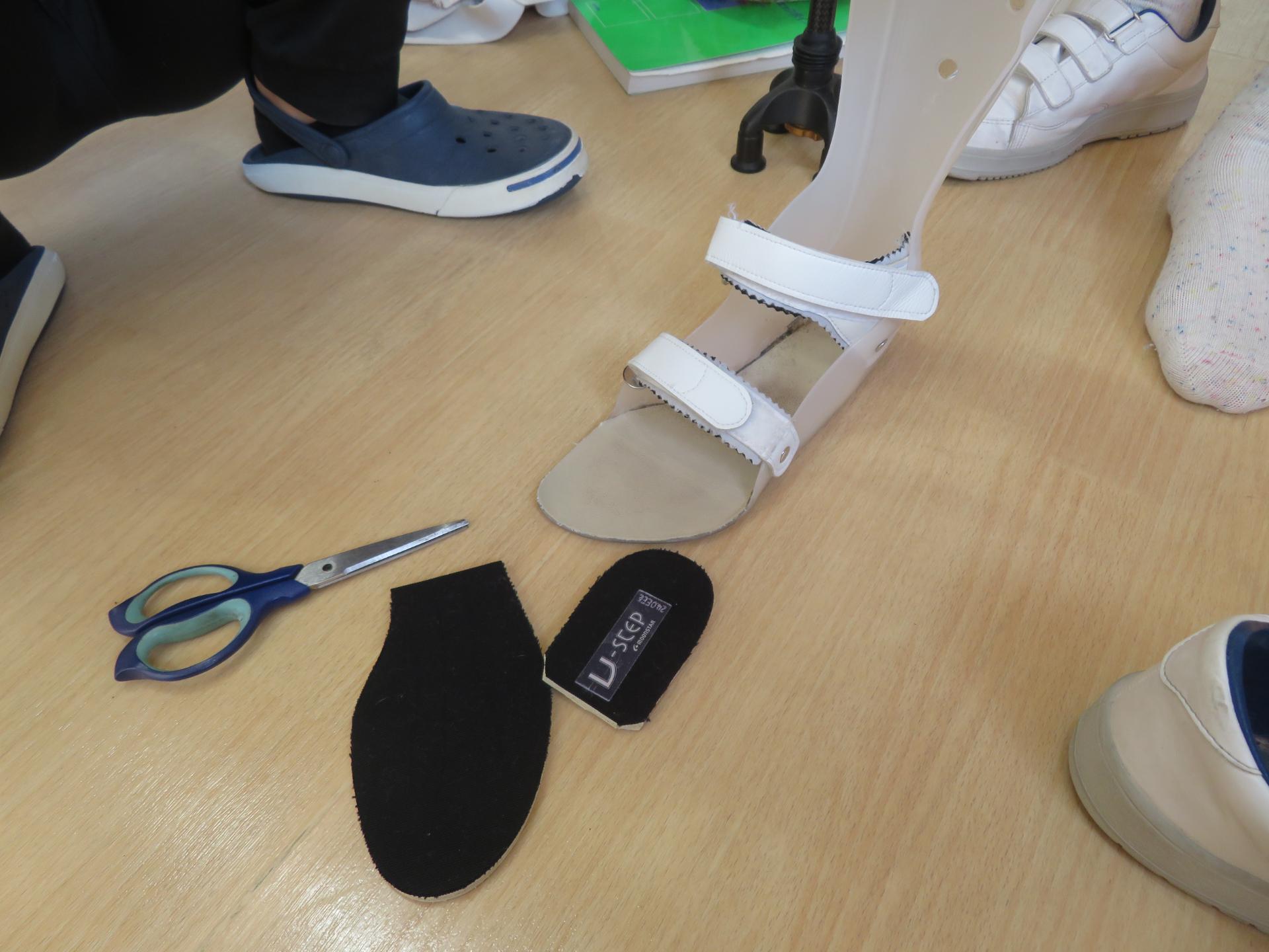 装具と足の間に調整材を入れてみる。