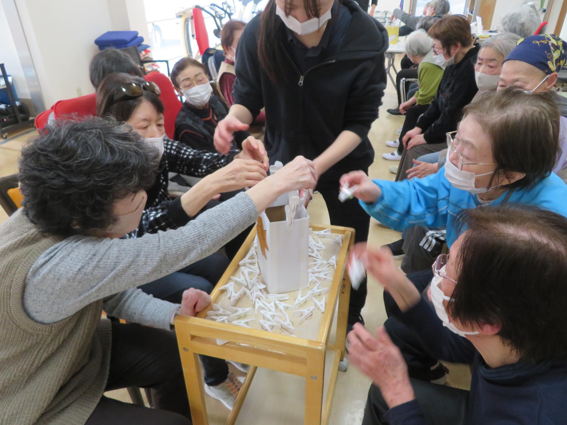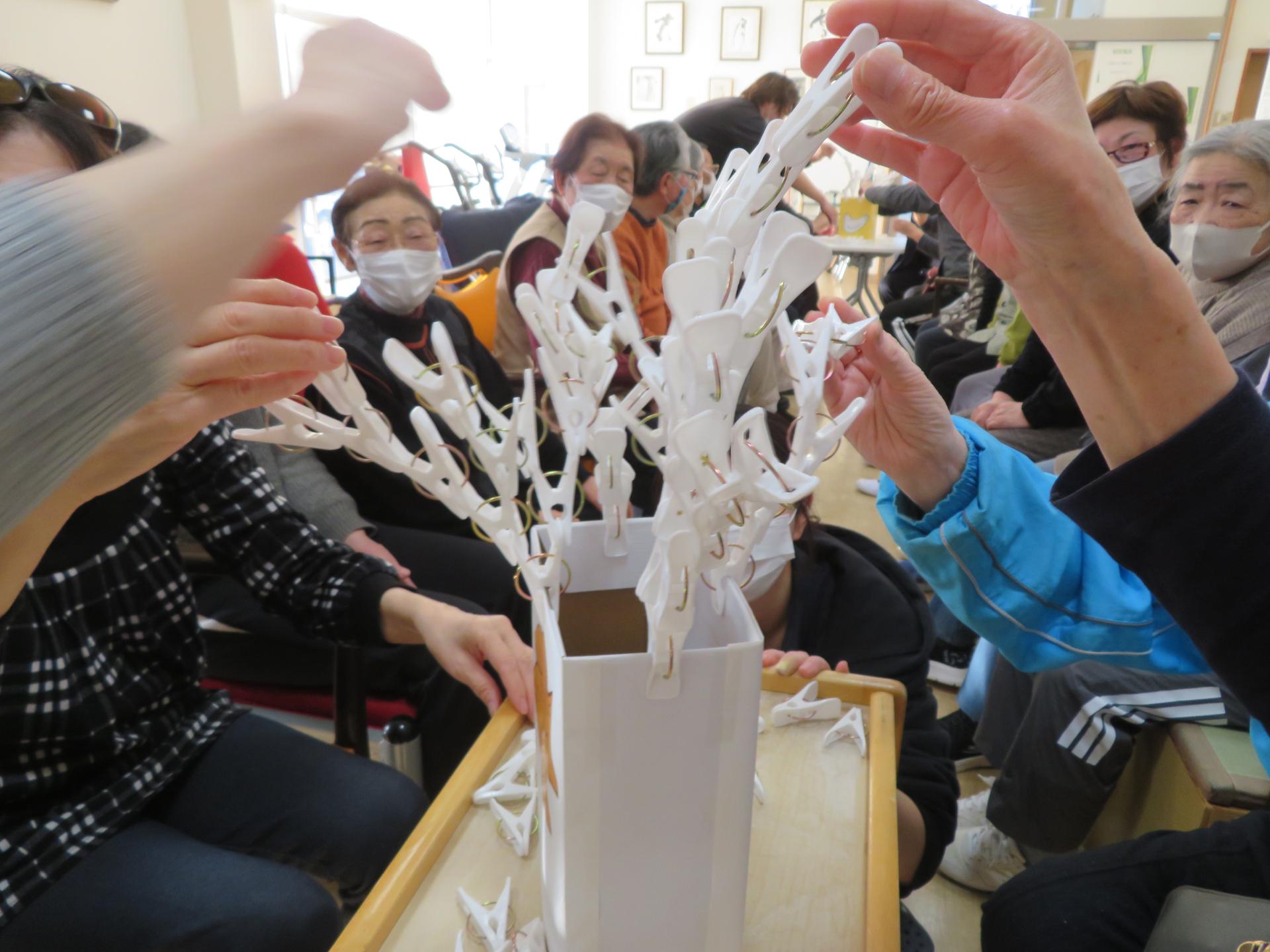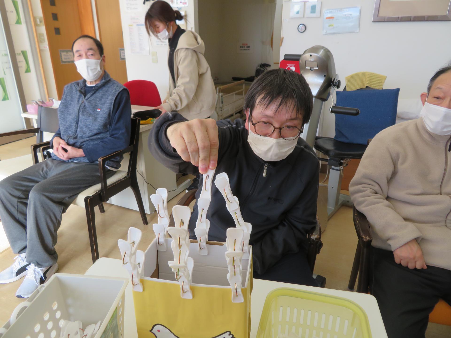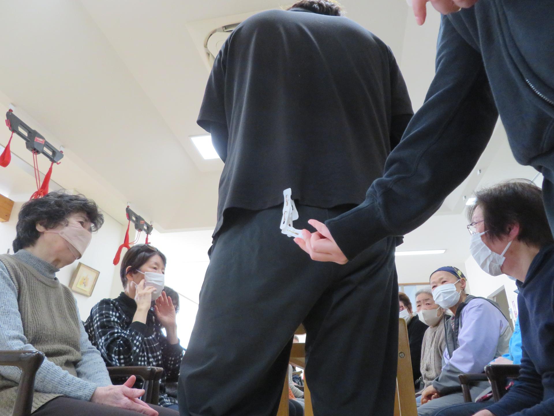 1分間でどれだけ洗濯ばさみをつけられるか。