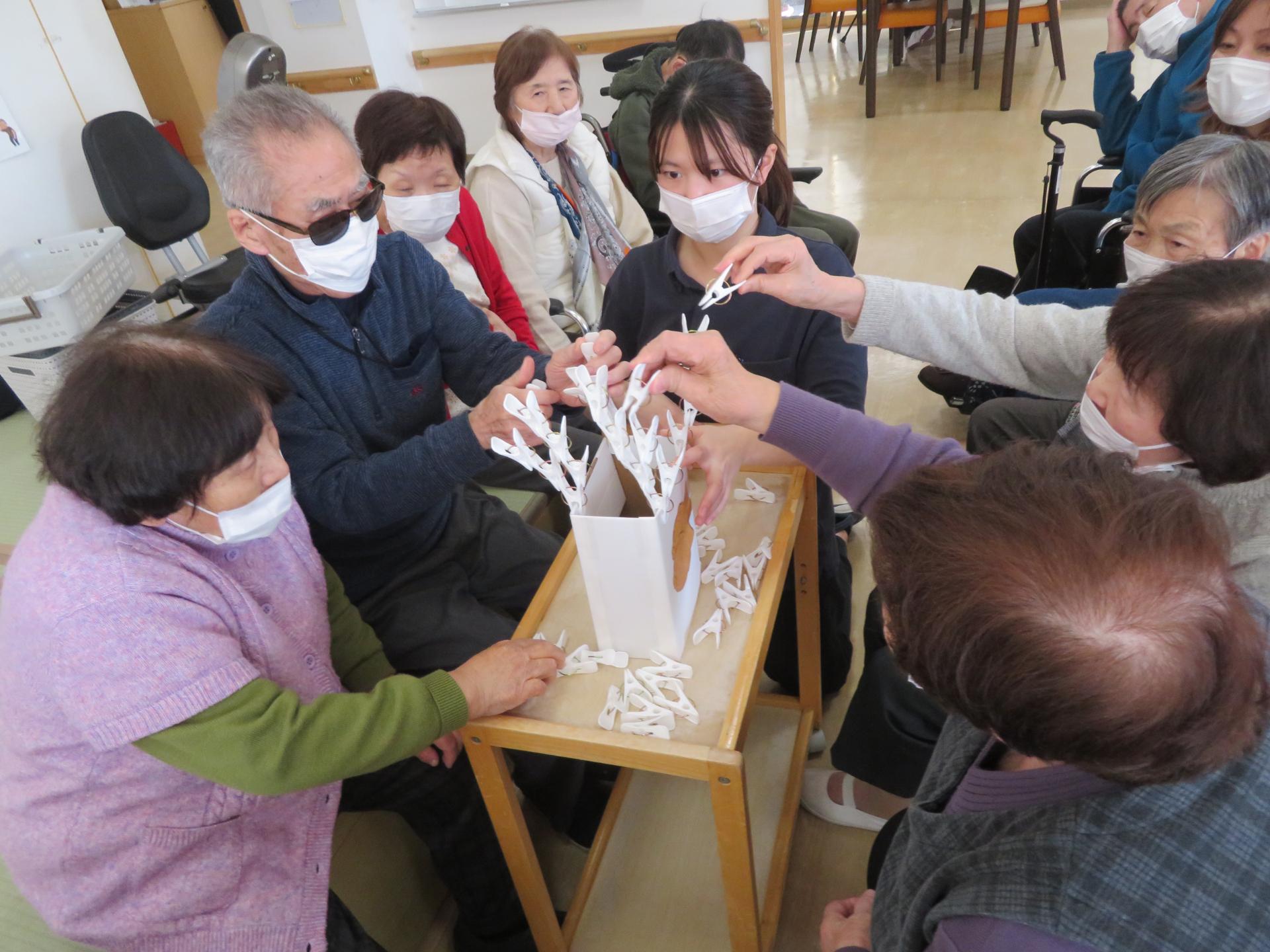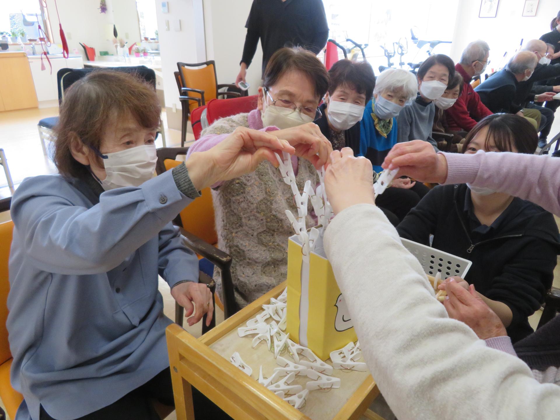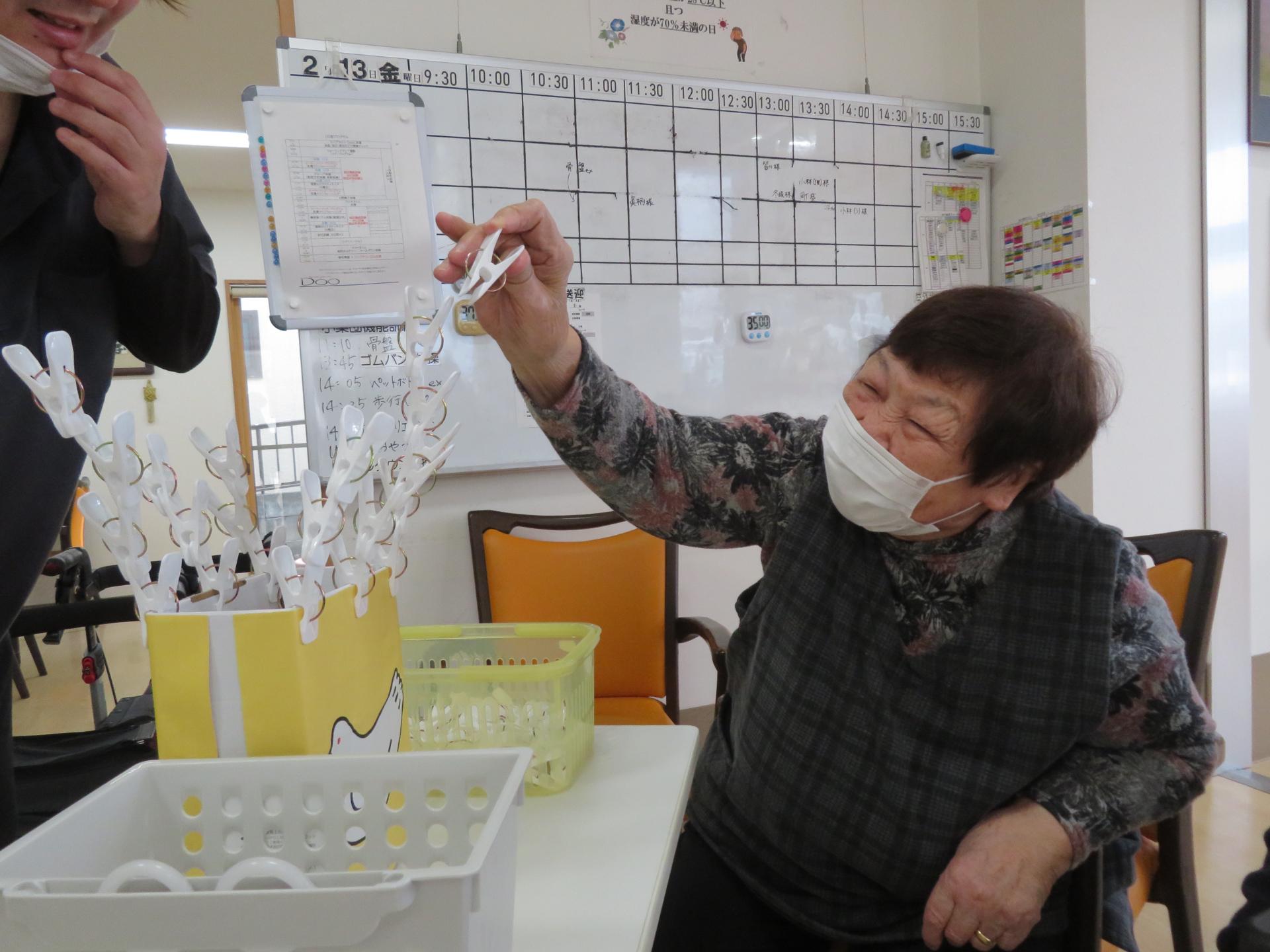 1分間でどれだけ洗濯ばさみをつけられるか。