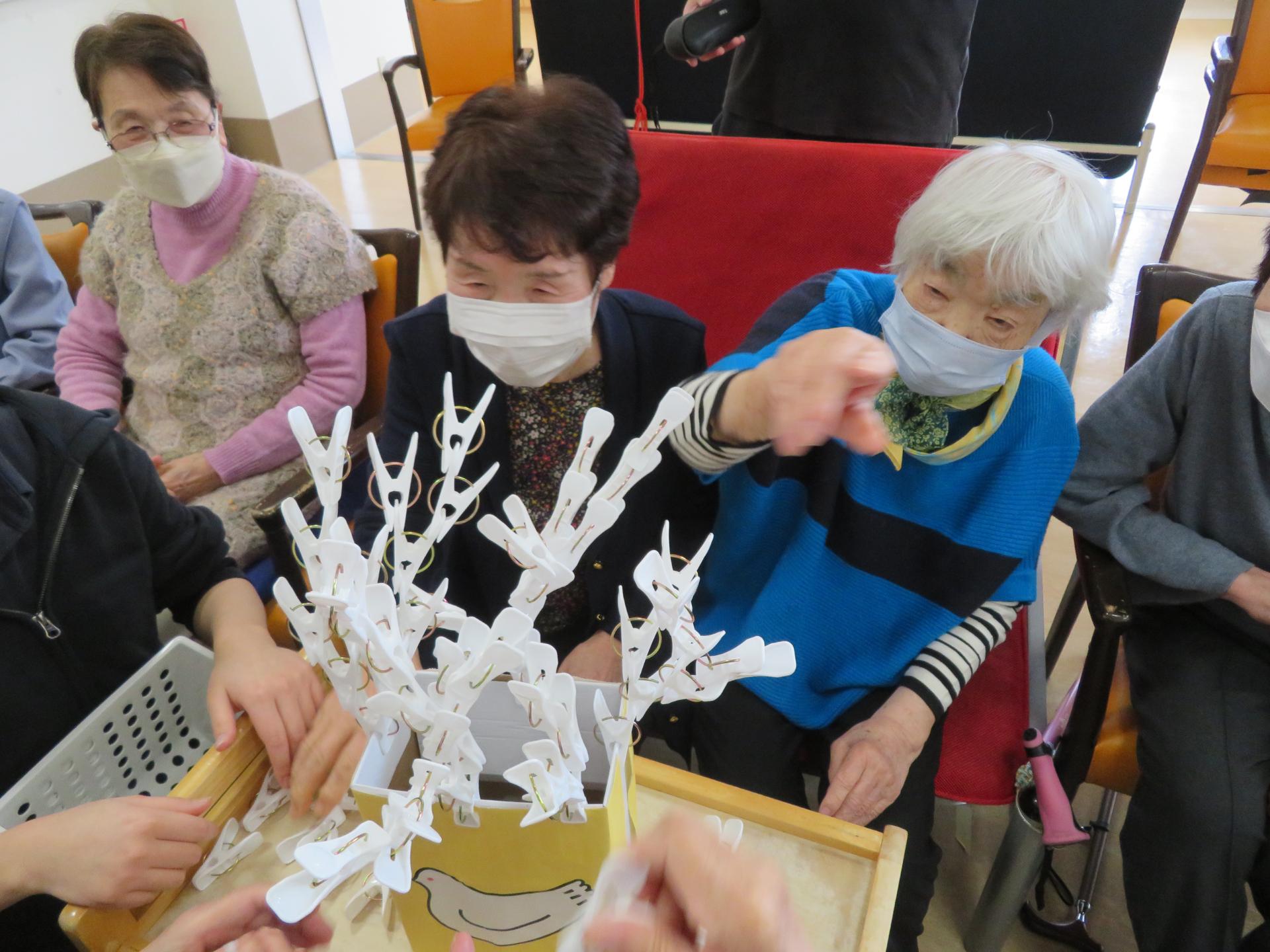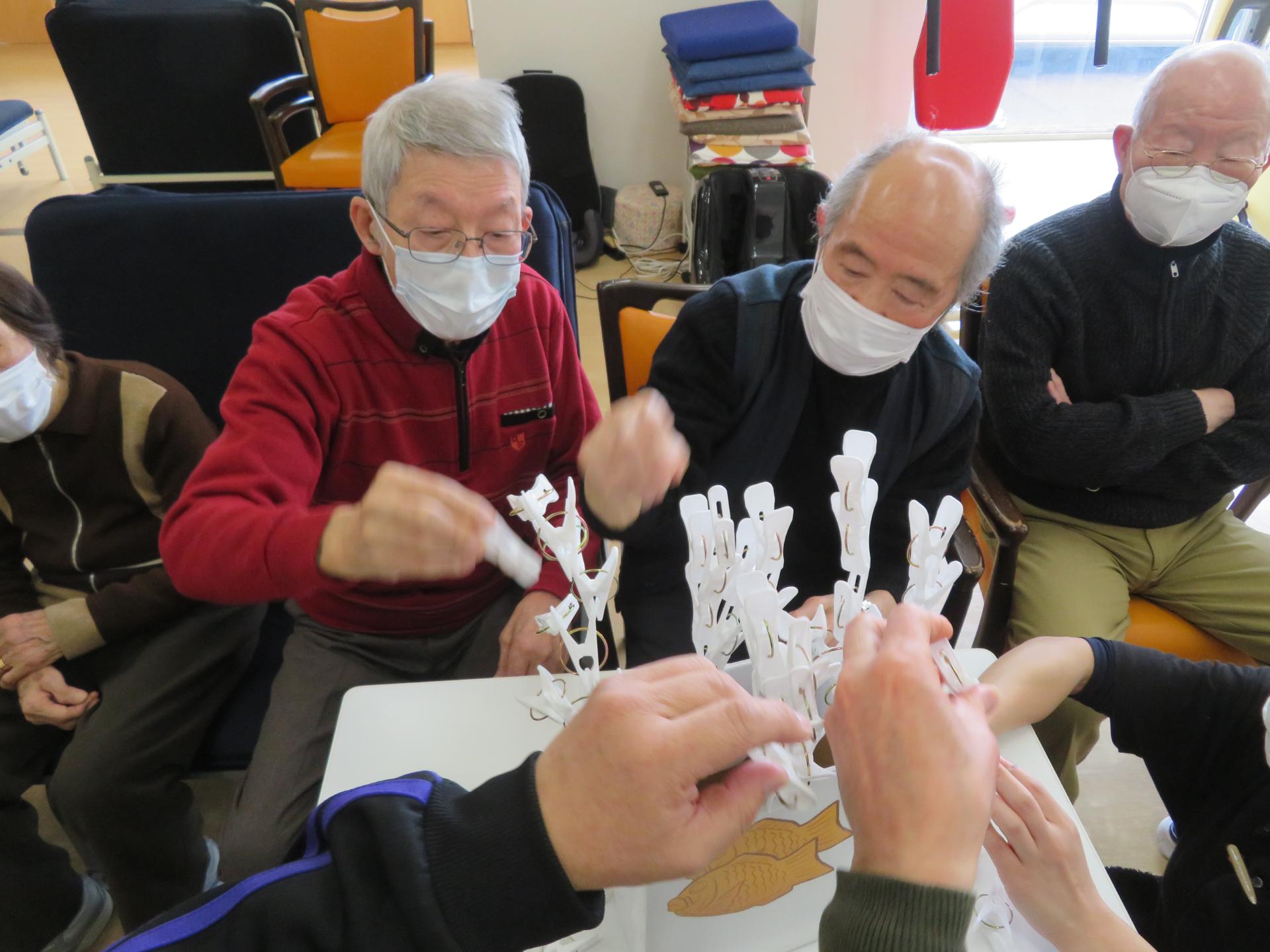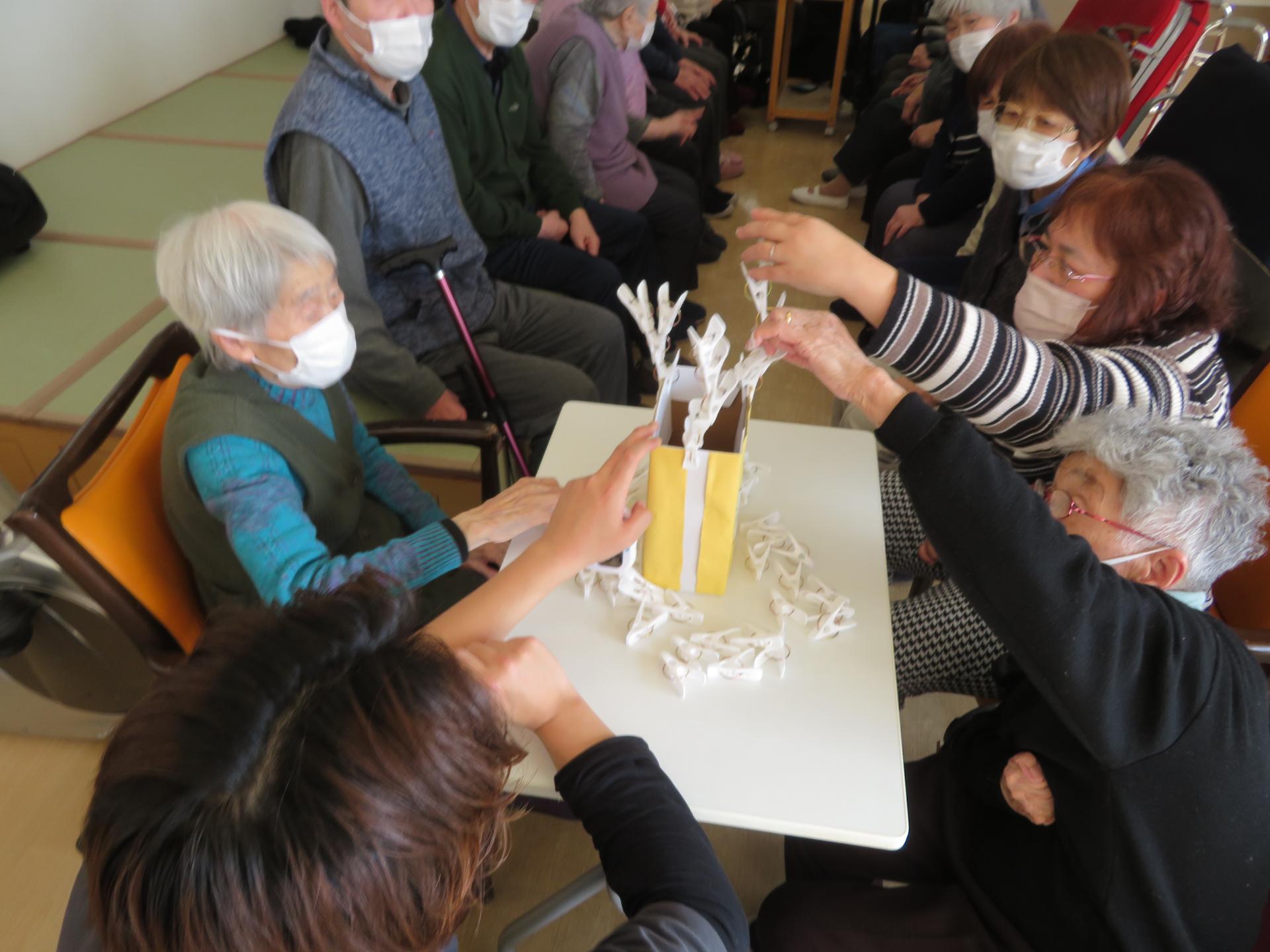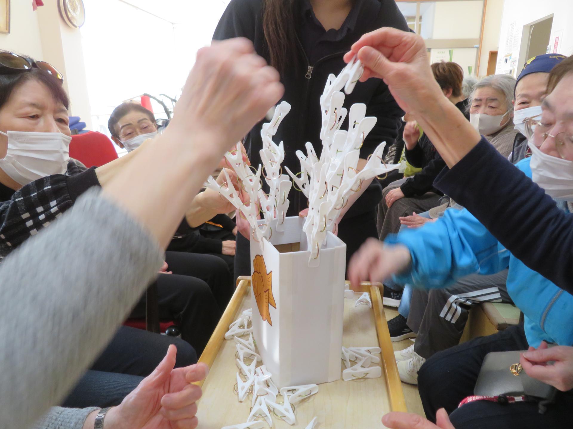1分間でどれだけ洗濯ばさみをつけられるか。