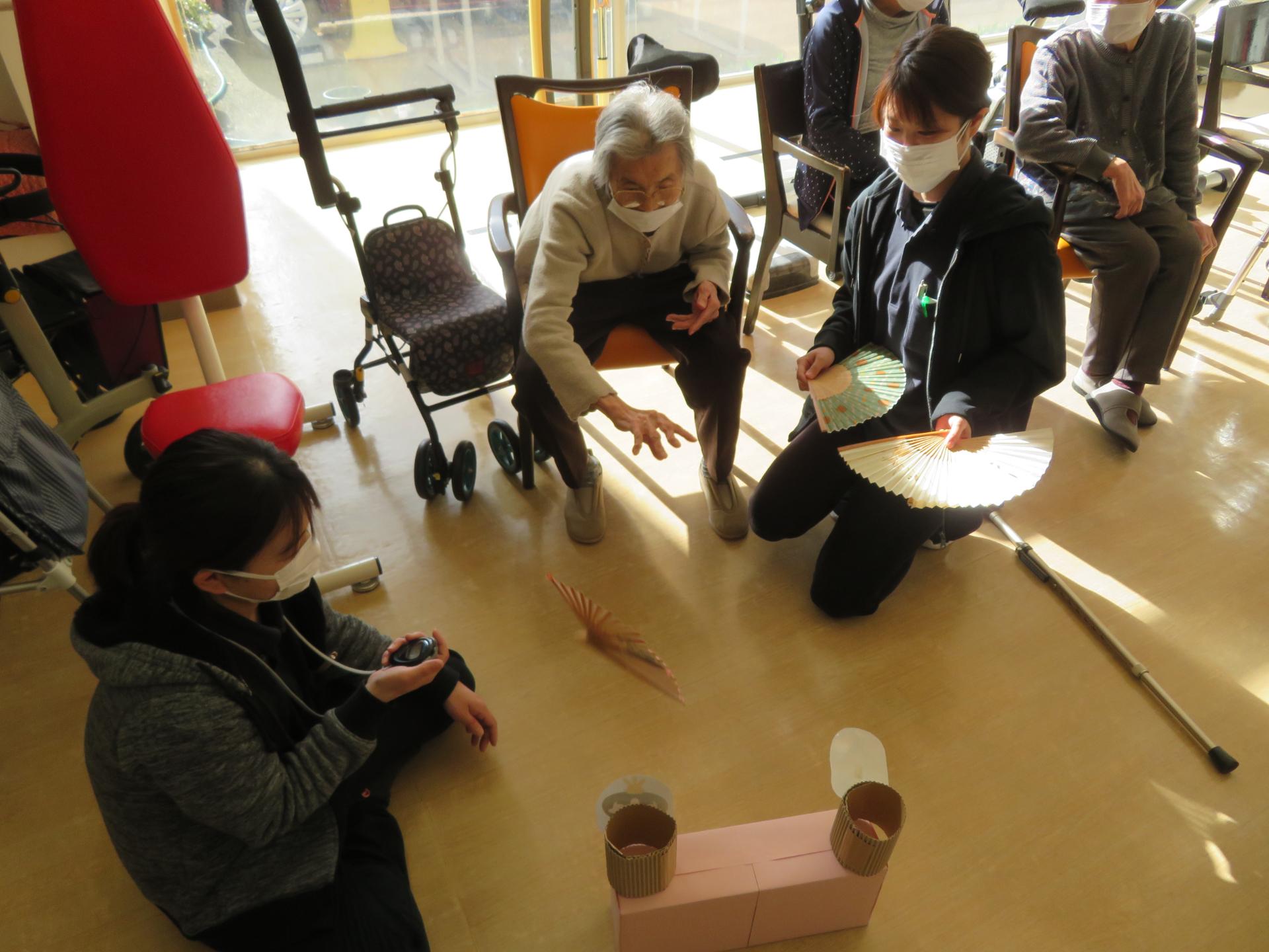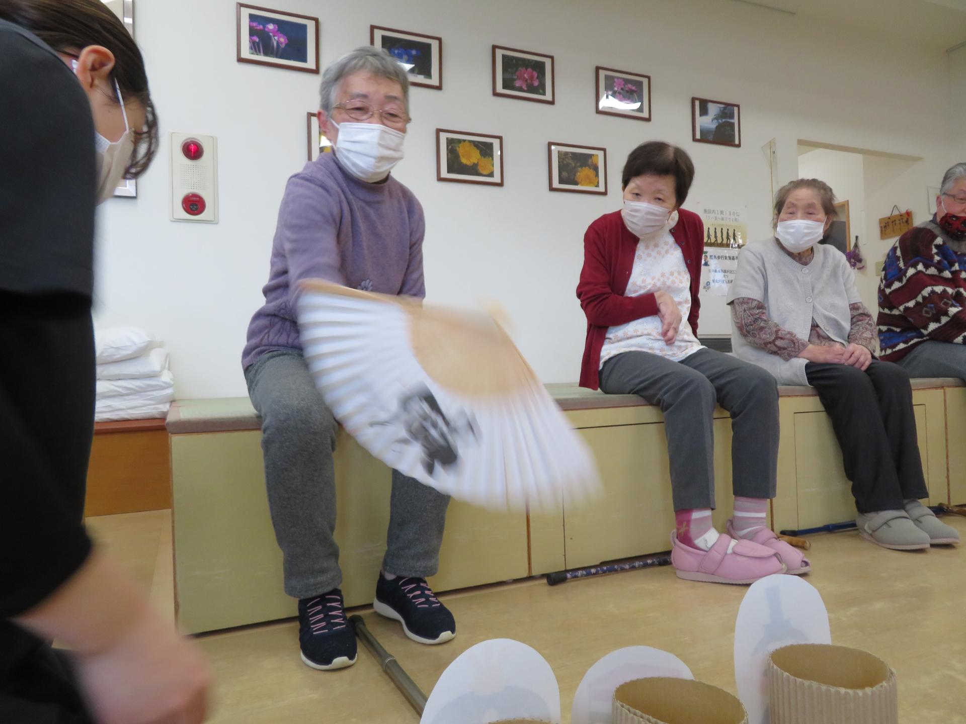 お座敷で、しとやかに、雅に、そっと扇子を投げて点数を競う…はずの遊び。