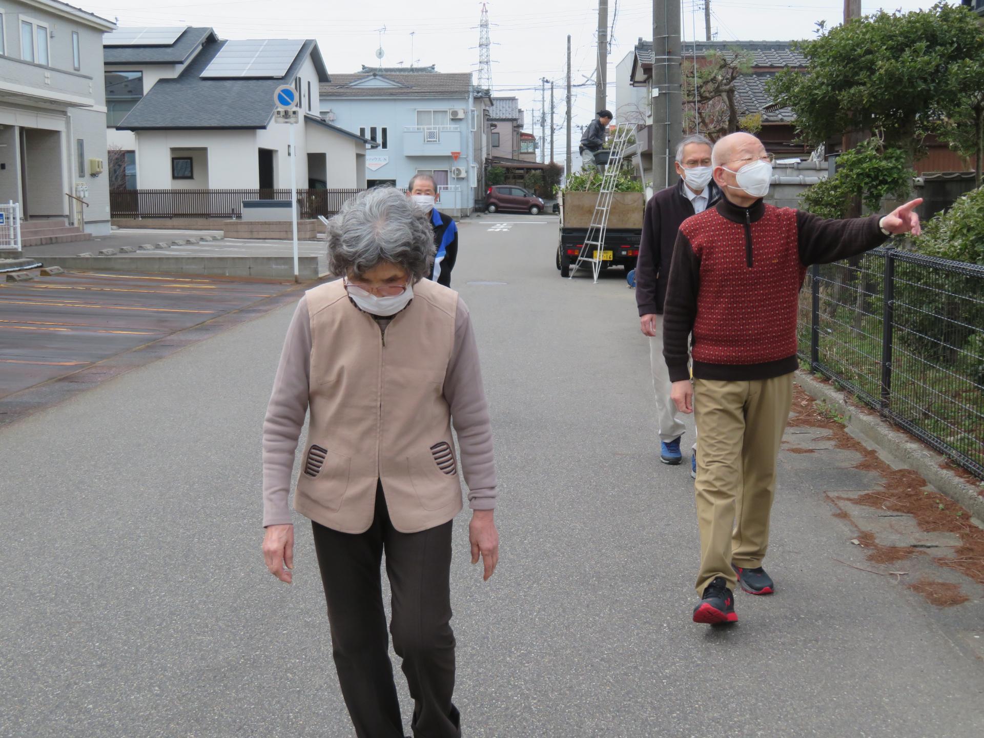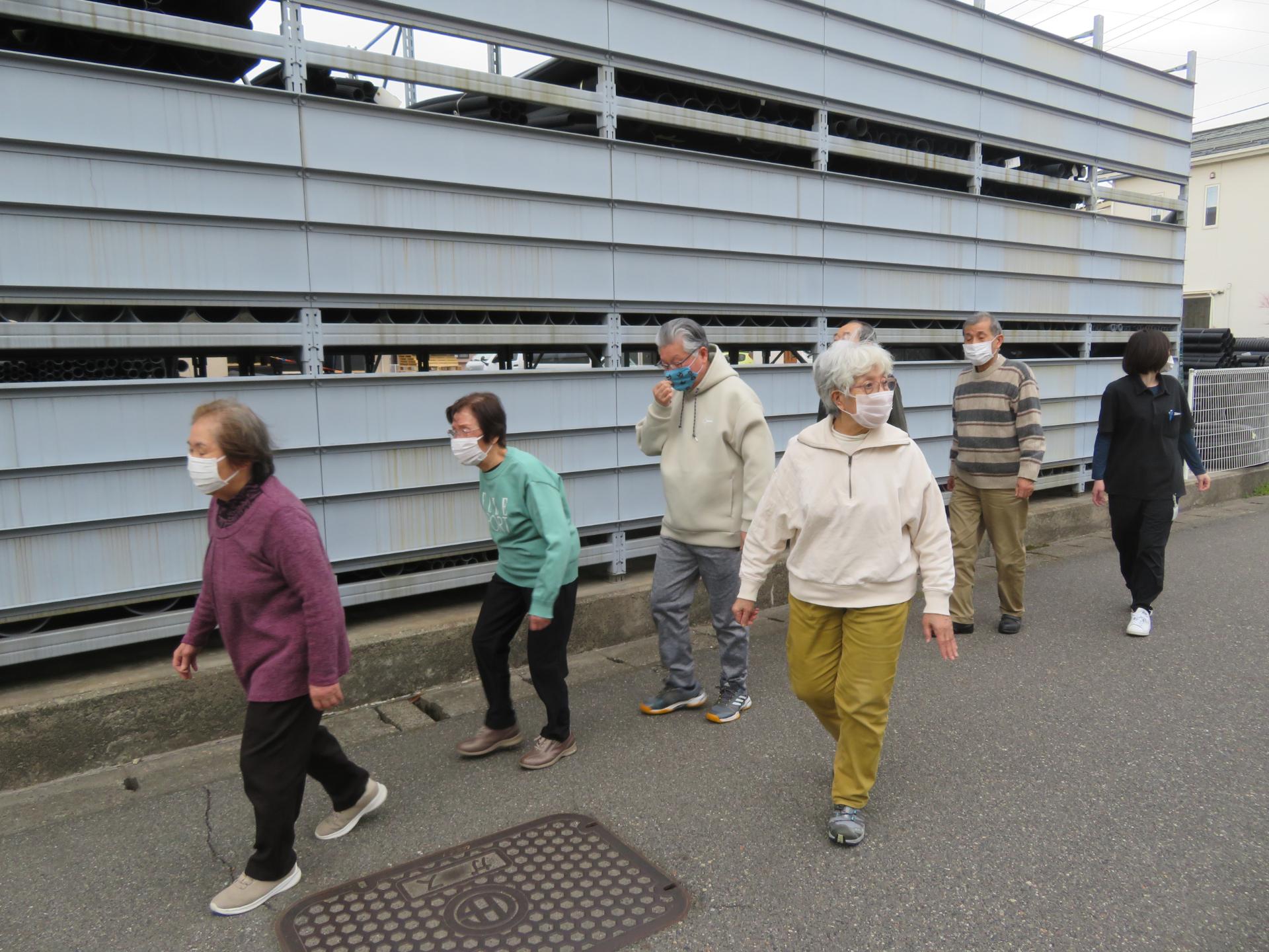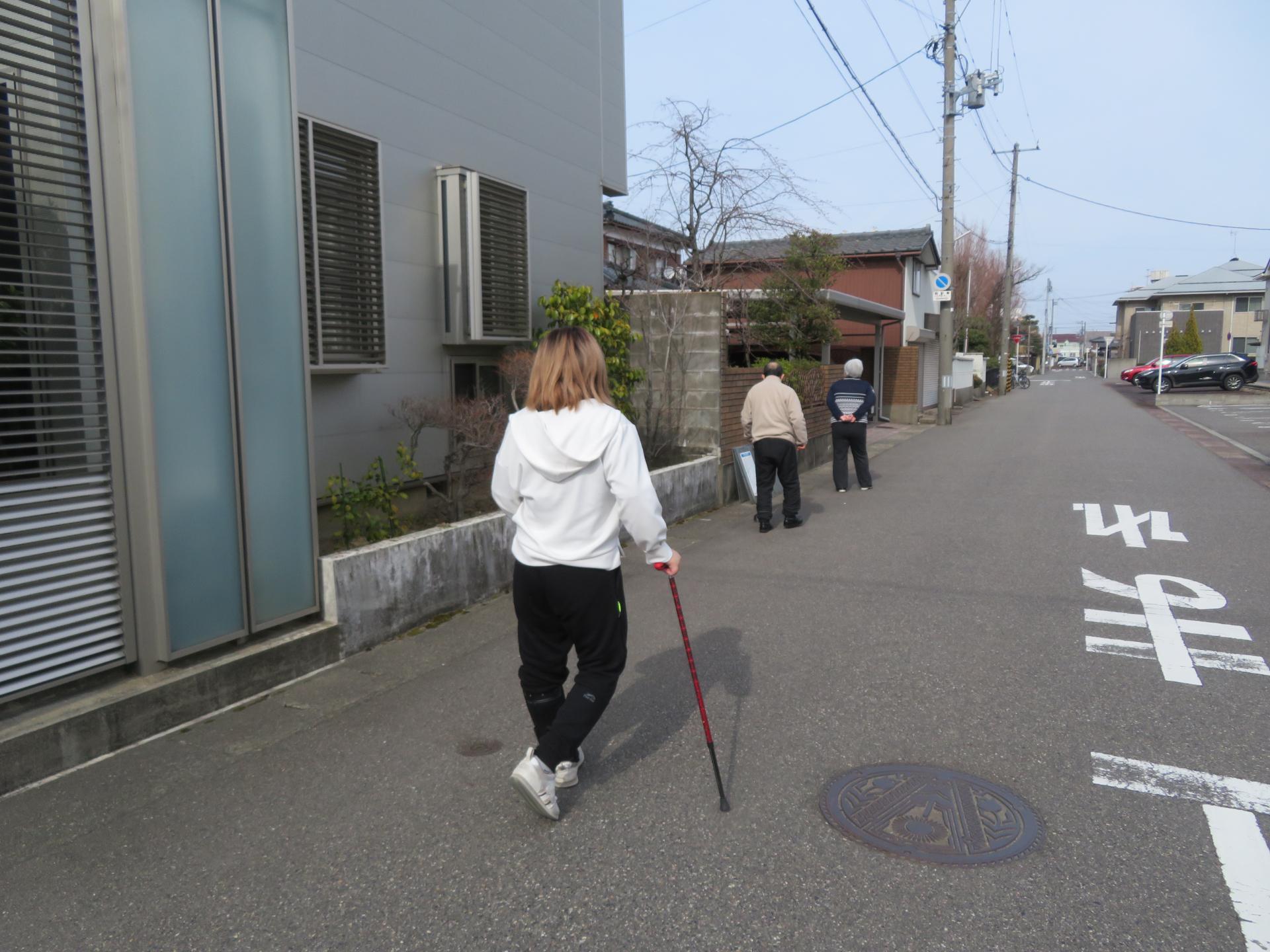 屋外歩行練習では、