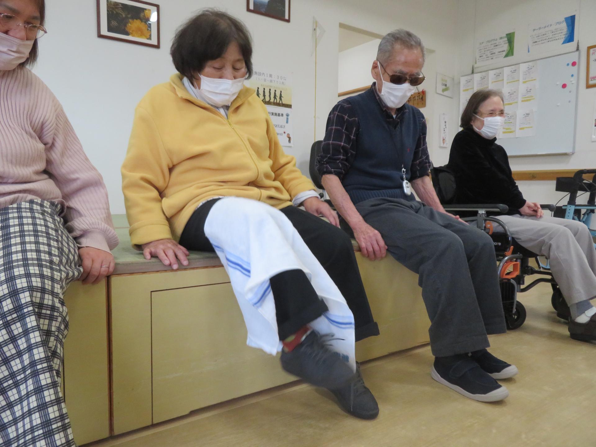 皆さんが普段使っているあの長〜いフェイスタオルをお膝の上にポンッと乗せます。