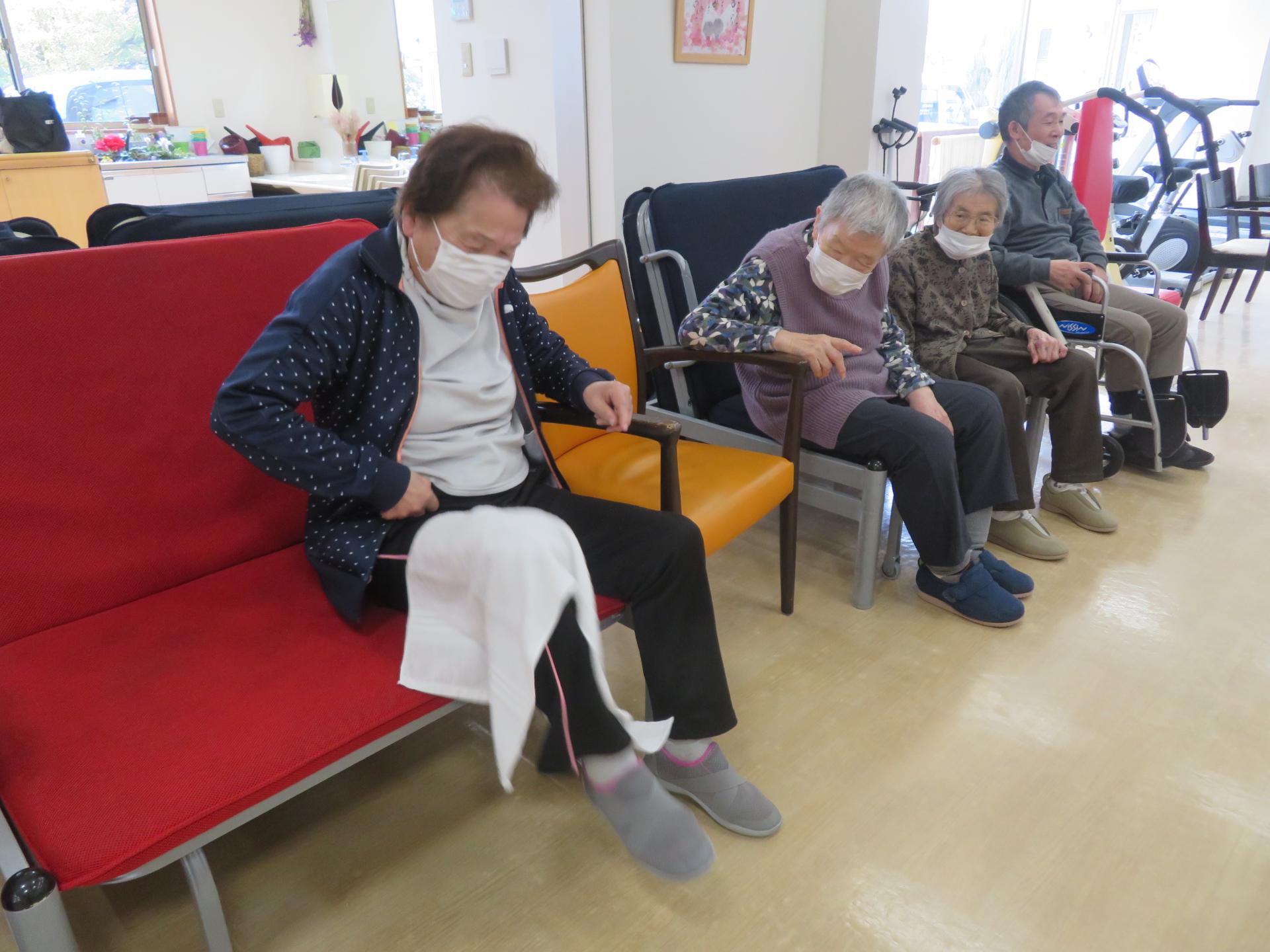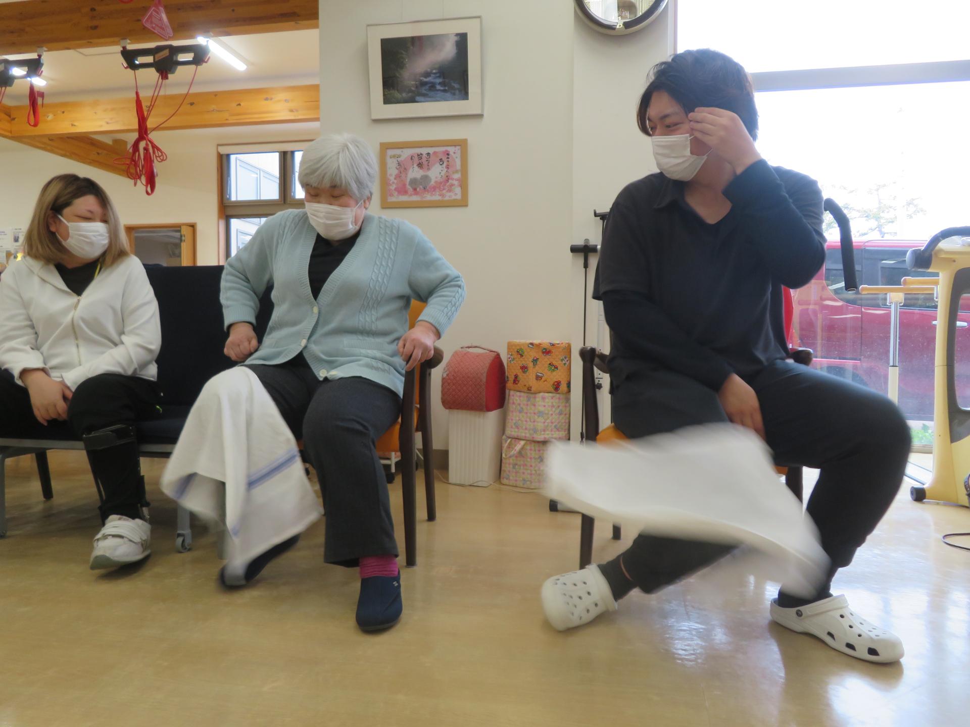 タオルとズボンの絶妙な摩擦。