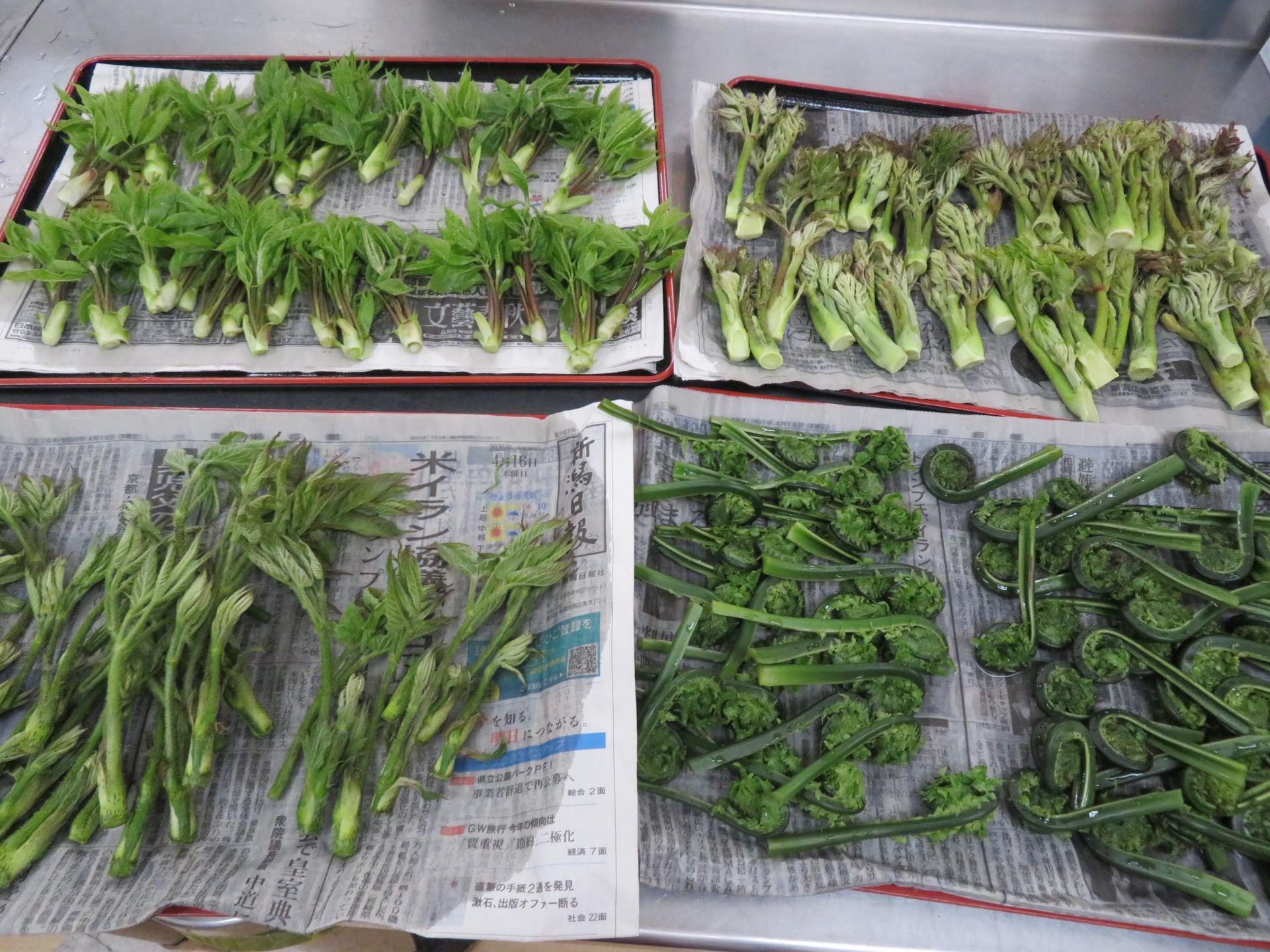 コゴミ、タラの芽、コシアブラ、ウド…