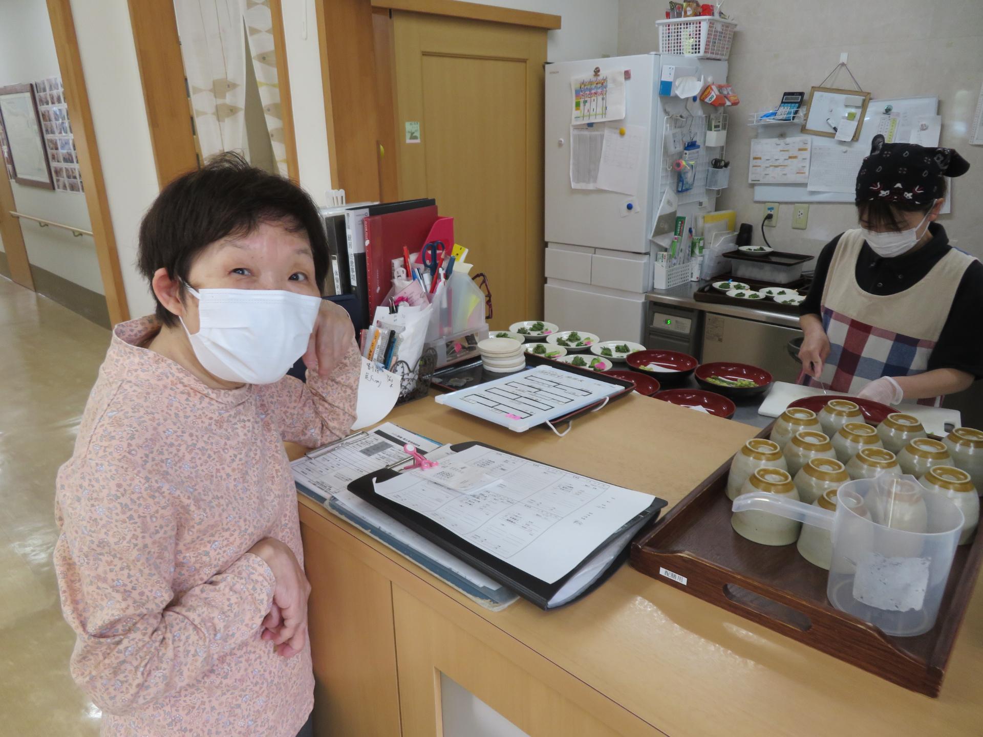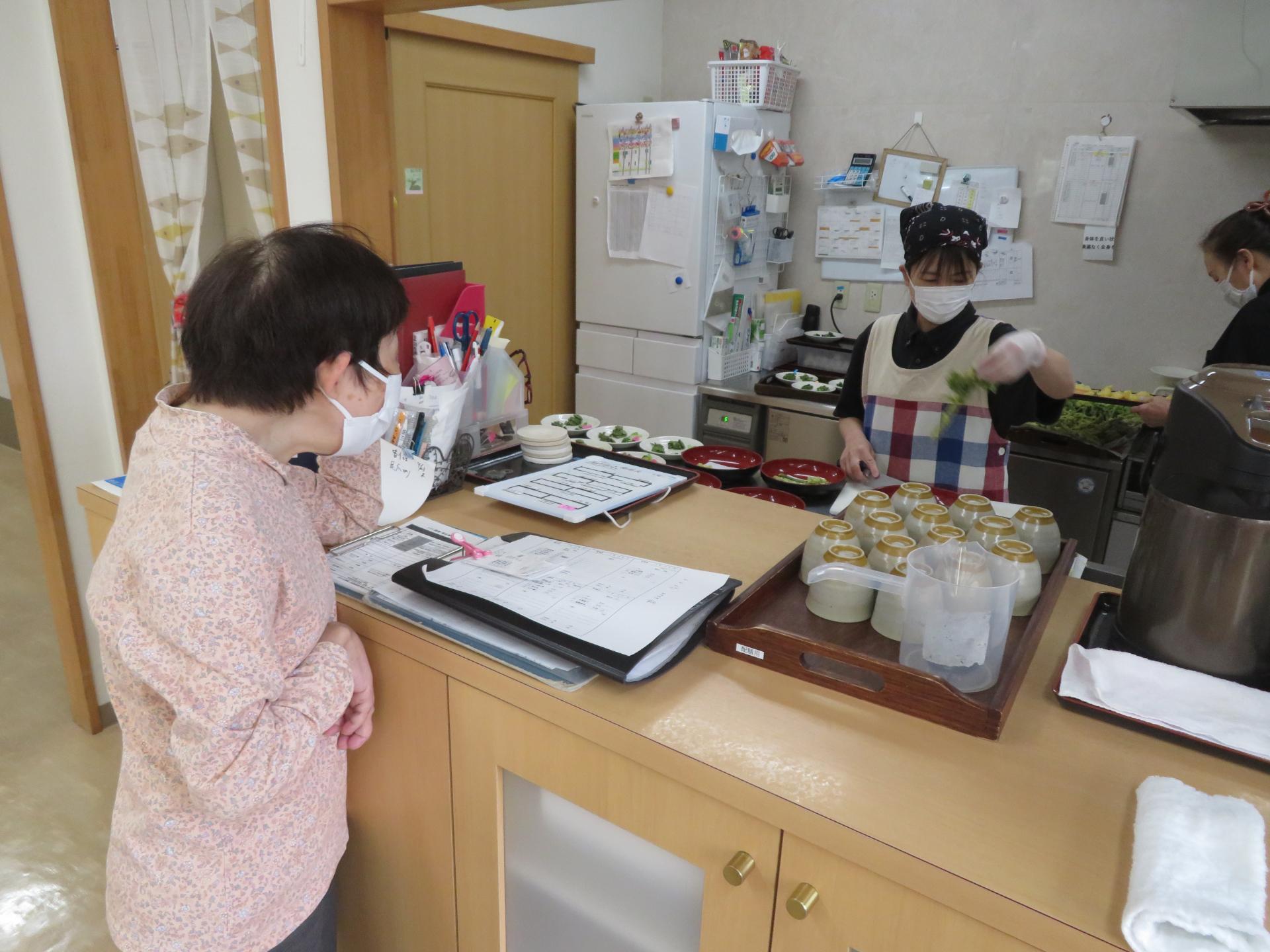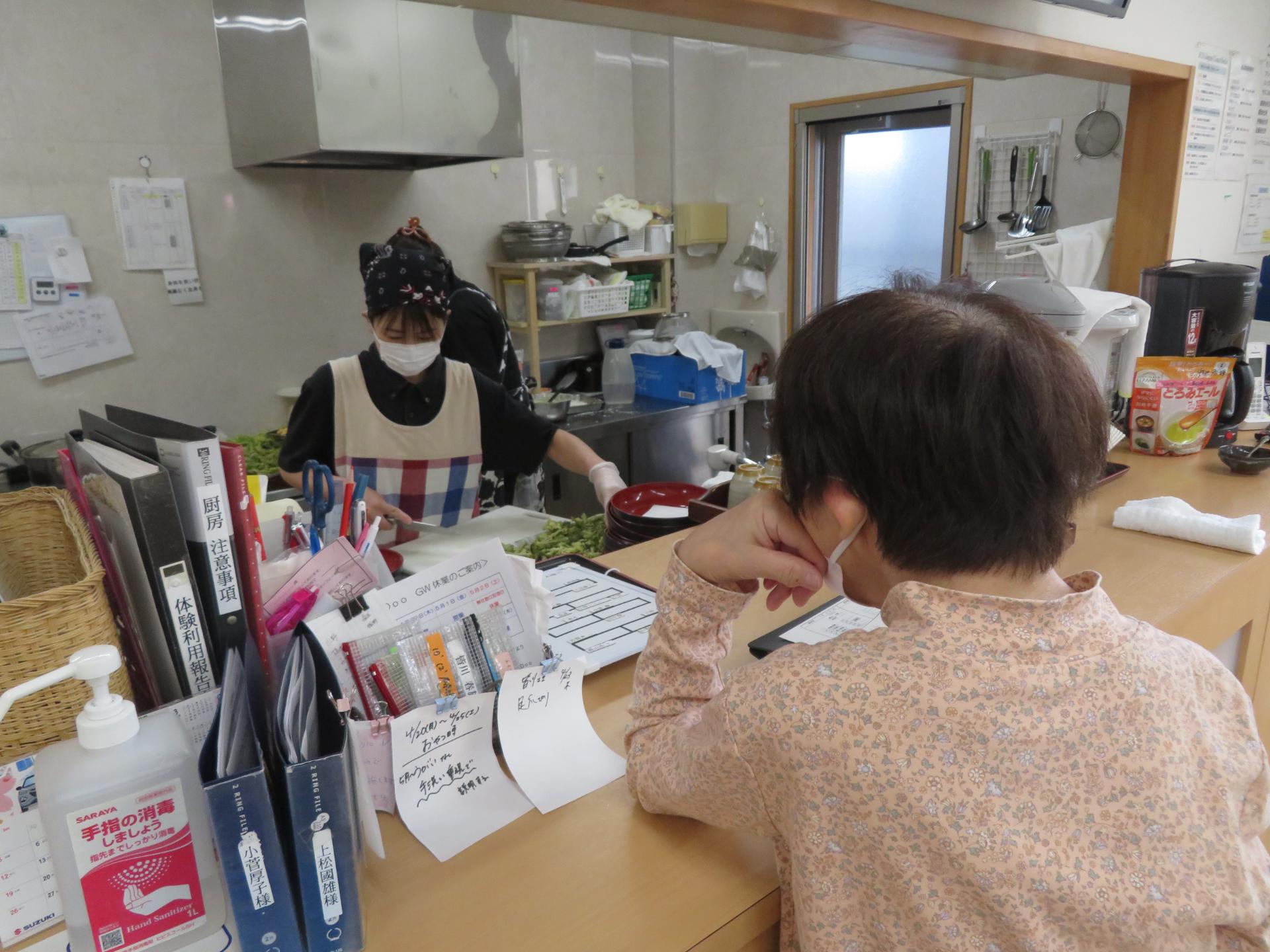 待ちきれずに厨房を覗きに行く利用者様もいます(笑)
