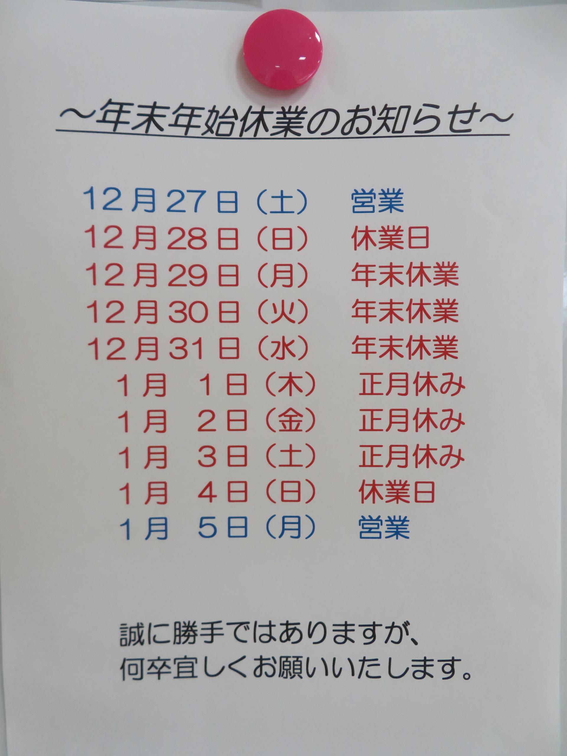 さて、今日は 年末年始休業のお知らせ をお伝えいたします。