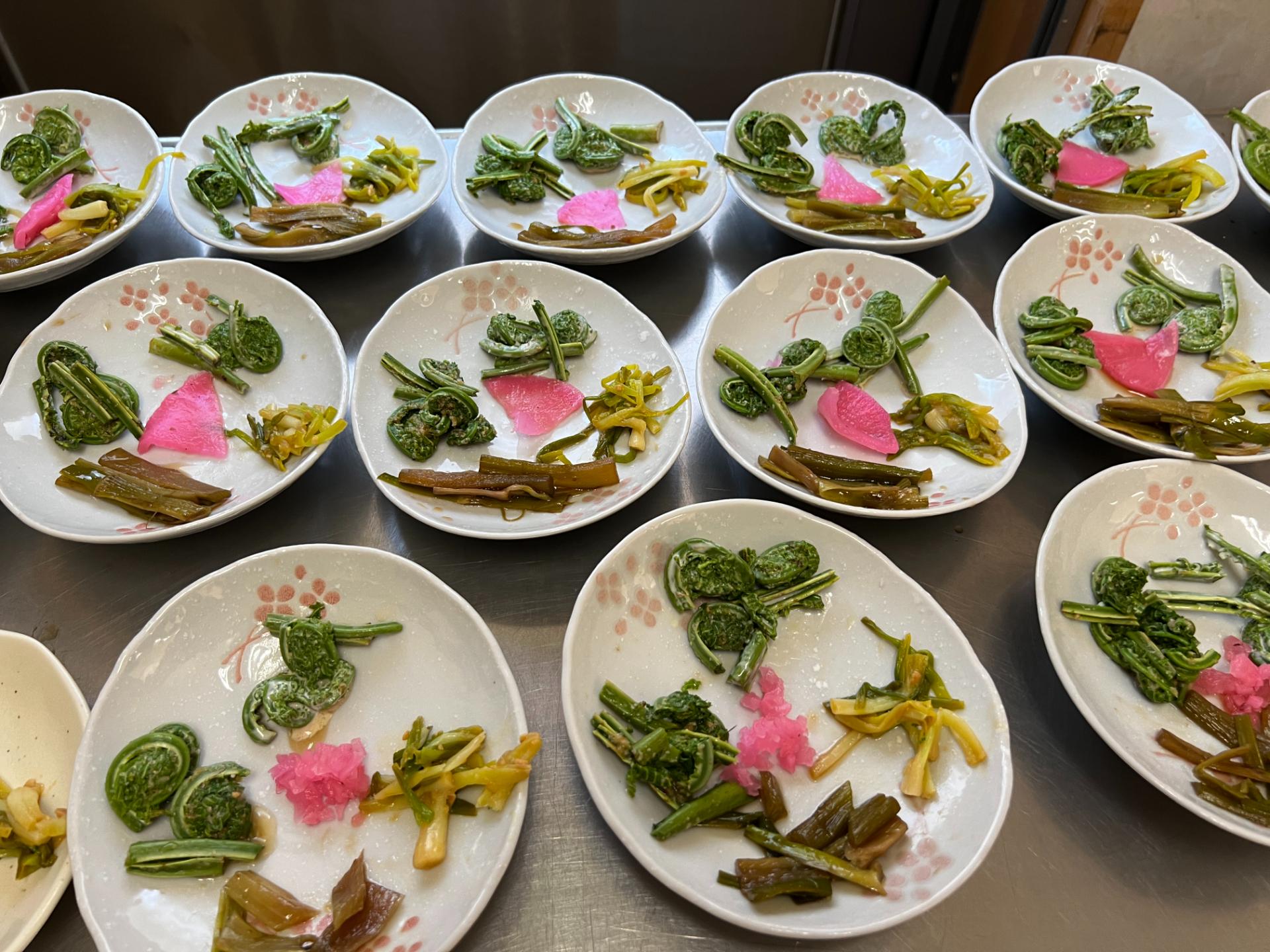 施設長のご実家の山で採れた、新鮮な山菜をふんだんに使います。